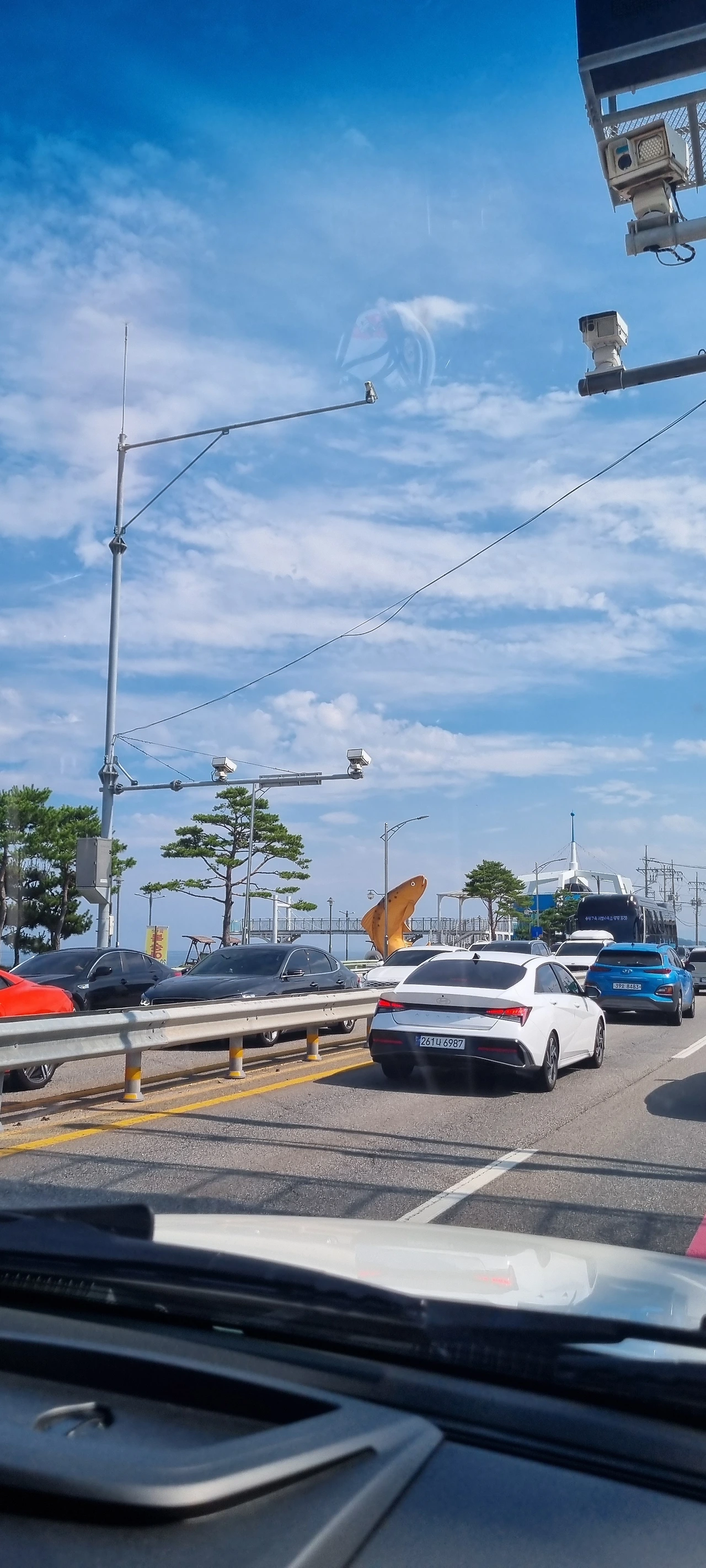 우리는 속초 여러 곳을 들릴 예정이었습니다. 그런데 모든 장소가 여름열기로 뒤덮인 상황을 극복하기 힘들더군요. 영랑호 둘레길도 50미터도 채 걷지 못하고 드라이브로 선회했고, 물치해수욕장은 입구서부터 차량행렬로 차단되어 입장조차 허락받지 못했답니다.