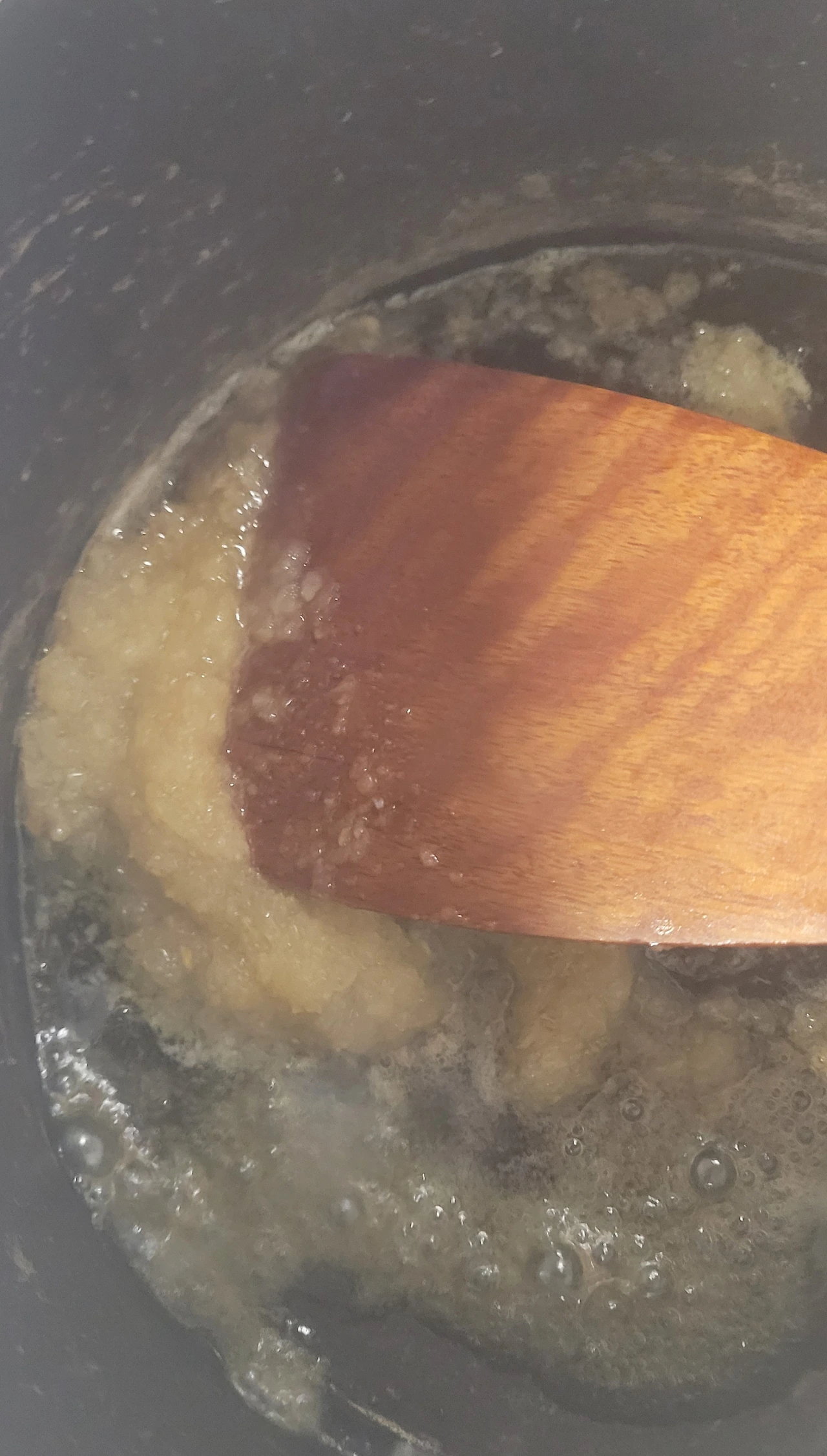 2. 냄비에 참기름 2T 넣은 후에 간 마늘을 넣고 볶다가 마늘향이 나면 굴을 넣고 볶습니다.(중 약불)