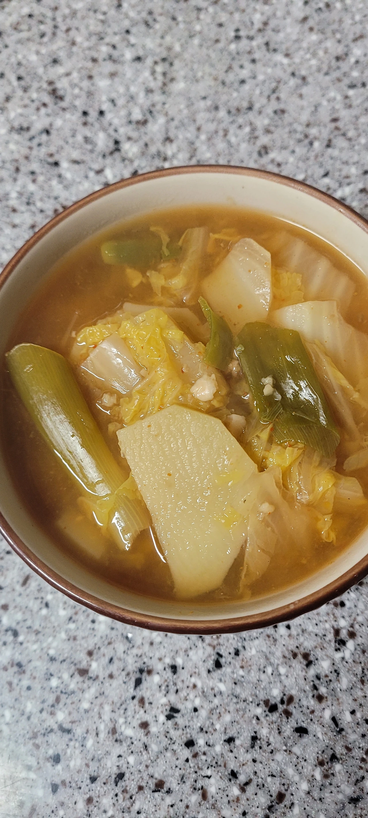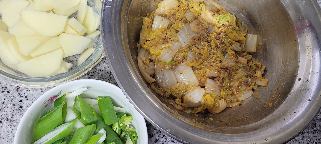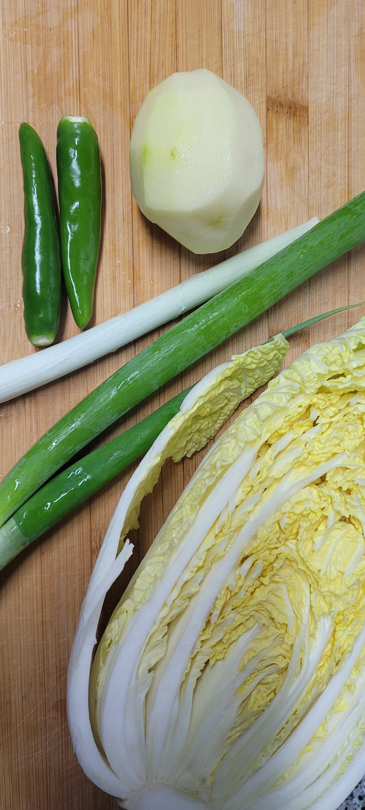 주재료: 알배추 500g, 감자 1알, 대파 1대, 청양고추 2개