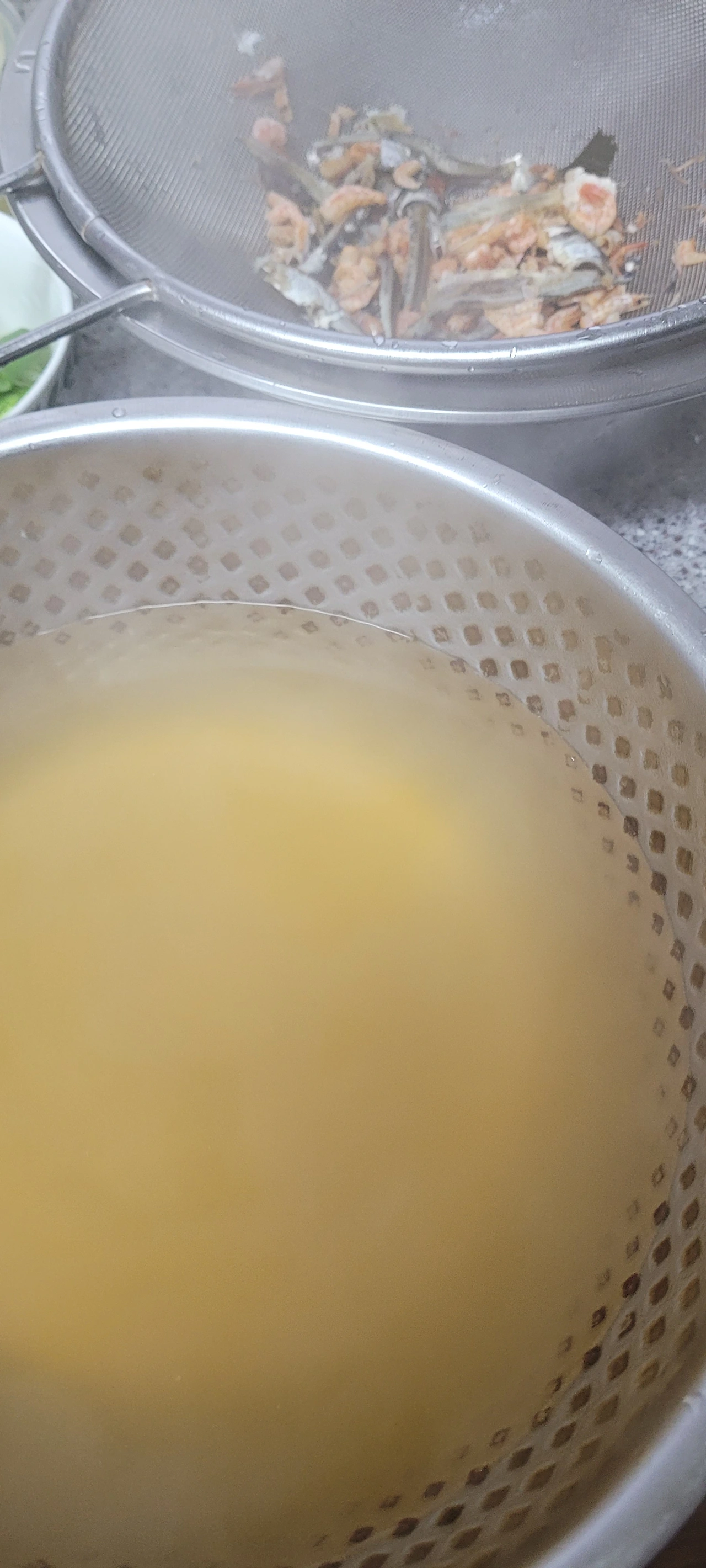 육수: 다시 멸치 한 줌, 건새우 한 줌, 다시마 2장