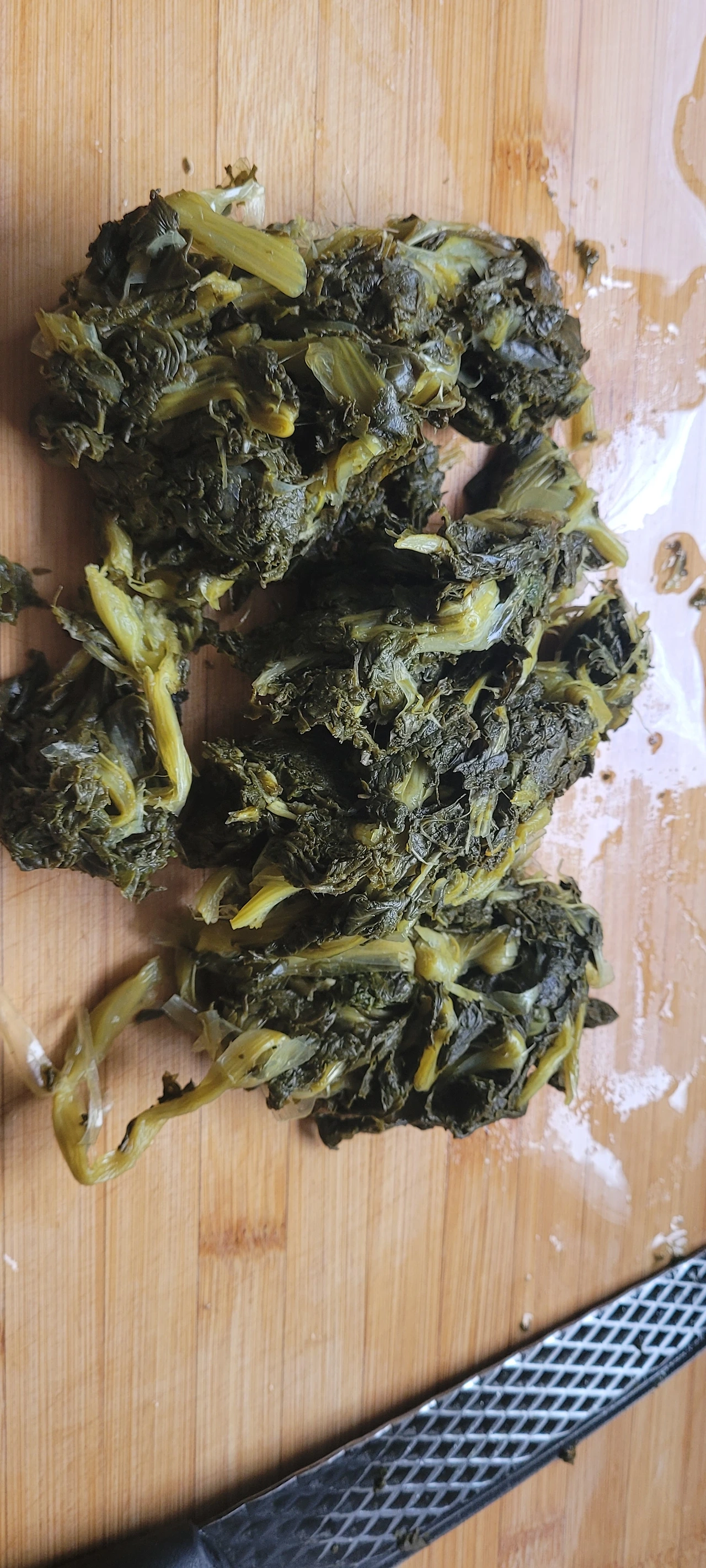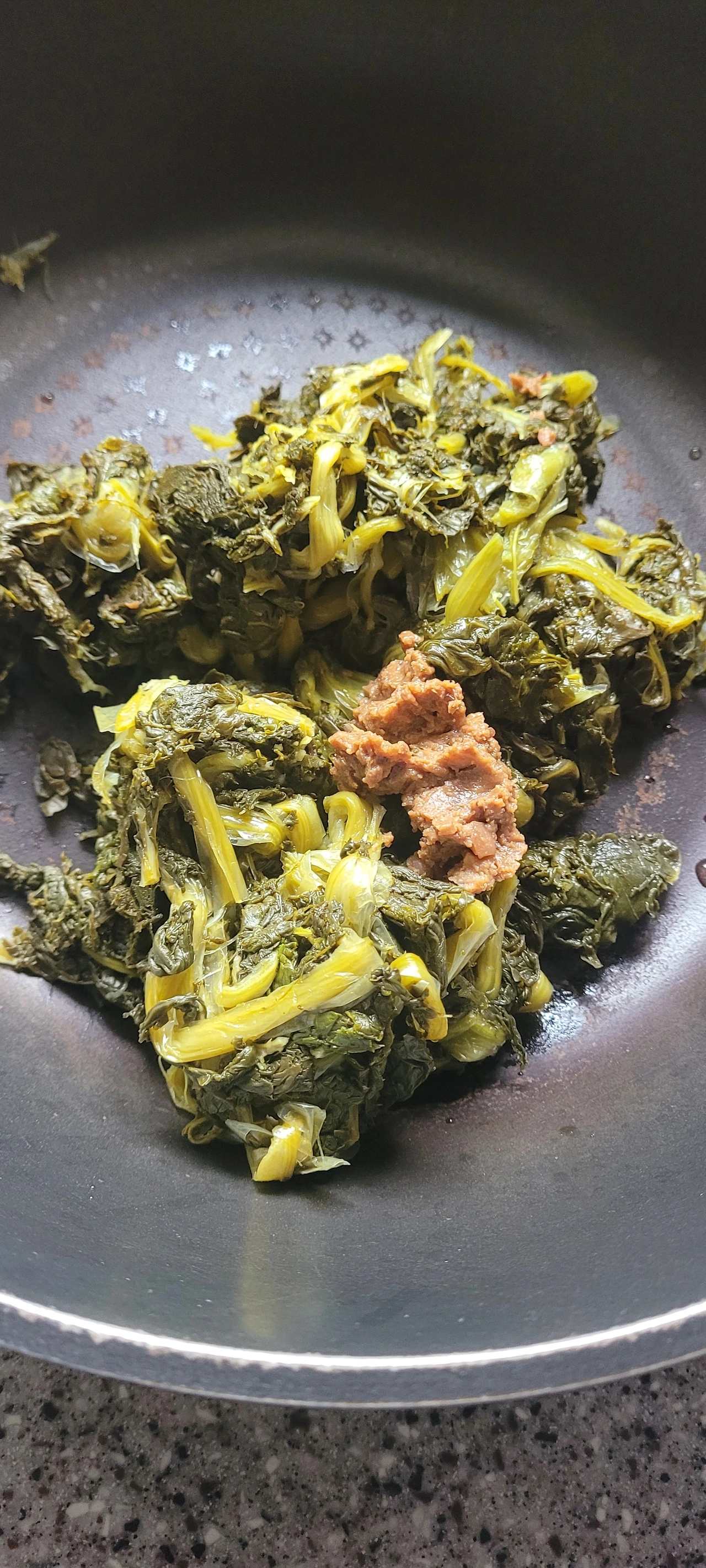매서운 바람이 하루를 모두 채우는 겨울철엔 냉장고와 상온에 보관된 식재료 재고가 어떤 게 있는지 살피게 됩니다. 냉동실 한편에 김장 때 살짝 데쳐 소분해 놓은 무청시래기가 떠올랐습니다. 마른 시래기가 아니기 때문에 해동해서 바로 사용 가능합니다.