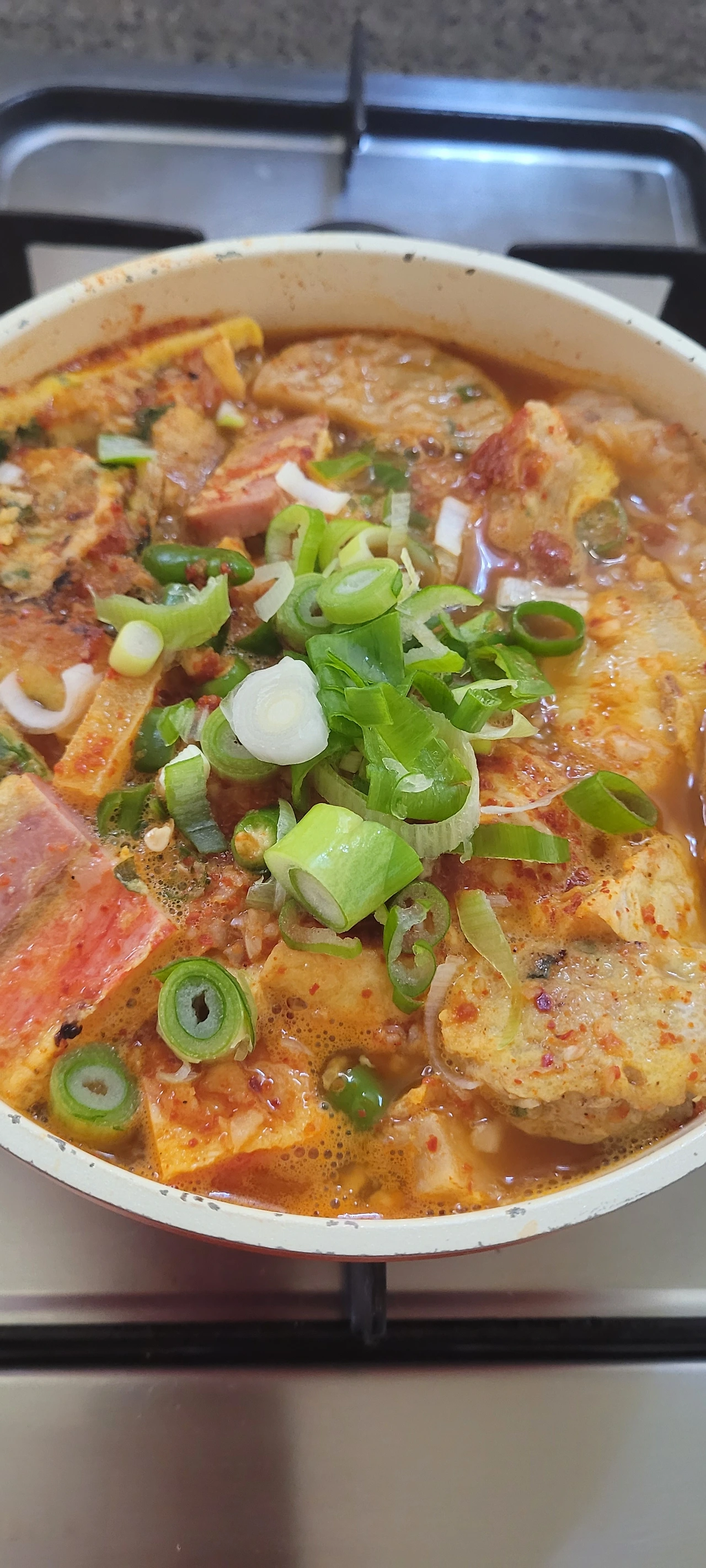 3. 우르르 끓을 때 대파 한 줌을 넣고 한 번 더 바글바글 끓이면 완성.