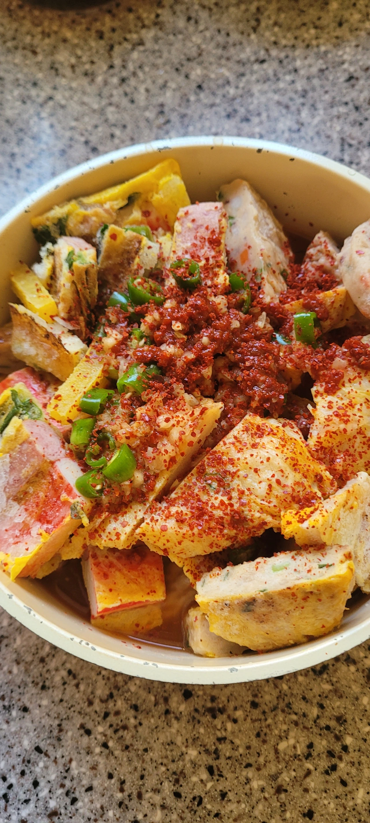 양념장: 고춧가루 1T, 고추장 1T, 간 마늘 1T, 굴소스 1T, 참치액 1T, 물 300ml