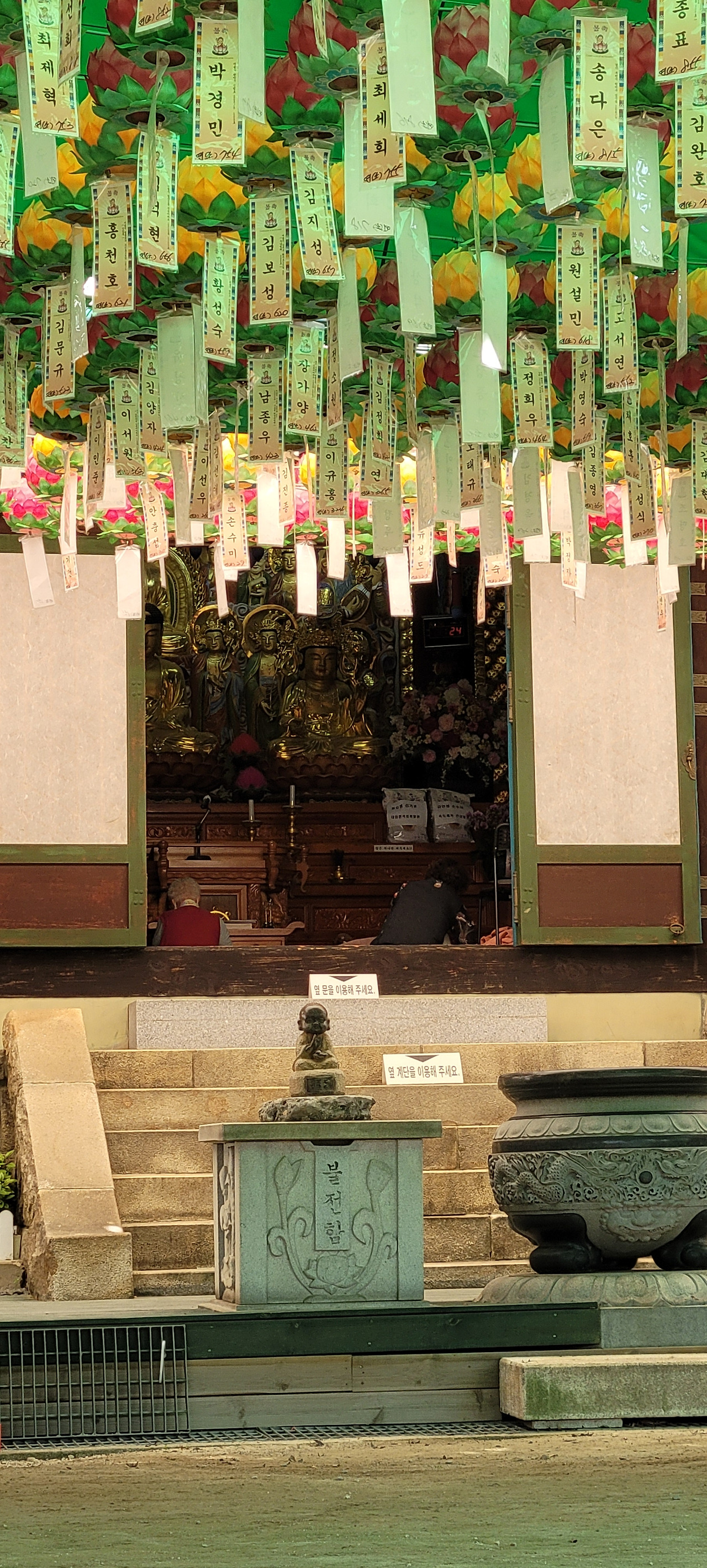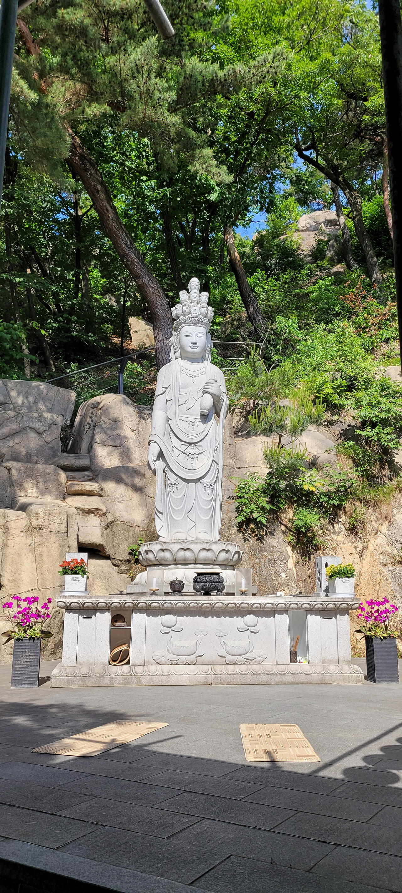 마침내 성주암에 도착하니 해냈다는 성취감에 기쁘다. 따라 오르던 신도가 보이지 않을 정도로 경사로가 가파르기 때문이다. 발아래로 펼쳐진 전경이 보상처럼 아름답게 펼쳐져 있다. 성주암 관세음보살상에 엎드려 친정엄마를 위해 기도드렸다. 평생 남편과 아들만이 삶의 주인이었던 엄마는 지금 편안이 쉬고 계실까, 제발 그랬으면 좋겠다고 빌었다. 엄마는 천주교를 믿으셨지만 대자대비한 보살님이시니 이해해 주시겠지.