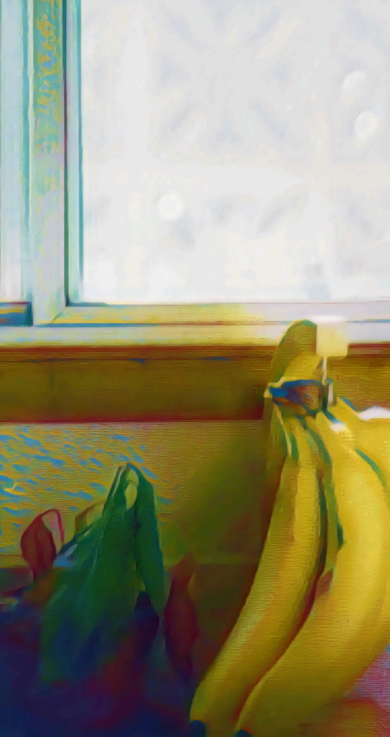 부엌 작은 창에 바나나를 두었다