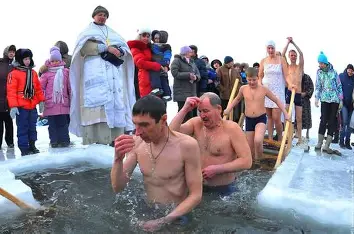 많은 정교회 공동체에서는 실내 성수의식에 이어 야외 의식을 거행한다. 러시아에서는 얼어붙은 연못이나 강의 얼음을 십자가 모양으로 깨어 ‘요단’이라 불리는 목욕터를 만든다. 이곳에서 다시 성수의식이 거행되고, 사제는 십자가를 물속에 던진다. 젊은이들이 차가운 물속으로 뛰어들어 십자가를 건져 올리려 경쟁하고, 첫 번째로 십자가를 건진 이는 그 해에 특별한 축복을 받는다고 여겨진다. 신자들은 최소한의 옷만 걸친 채 영하의 얼음물에 온몸을 담근다. 성호를 그으며 삼위일체에 대한 신앙을 고백한다. 그들에게 이것은 단순한 고행이 아니다. 그리스도께서 요단강에 들어가심으로써 저주받은 물을 축복으로 바꾸셨듯, 그들도 차가운 물에 들어감으로써 영적 갱신과 정화를 경험한다. 죽음과도 같은 차가운 물에 잠겼다가 나오는 것은, 옛 사람이 죽고 새 사람으로 거듭나는 세례의 의미를 재현하는 것이다.