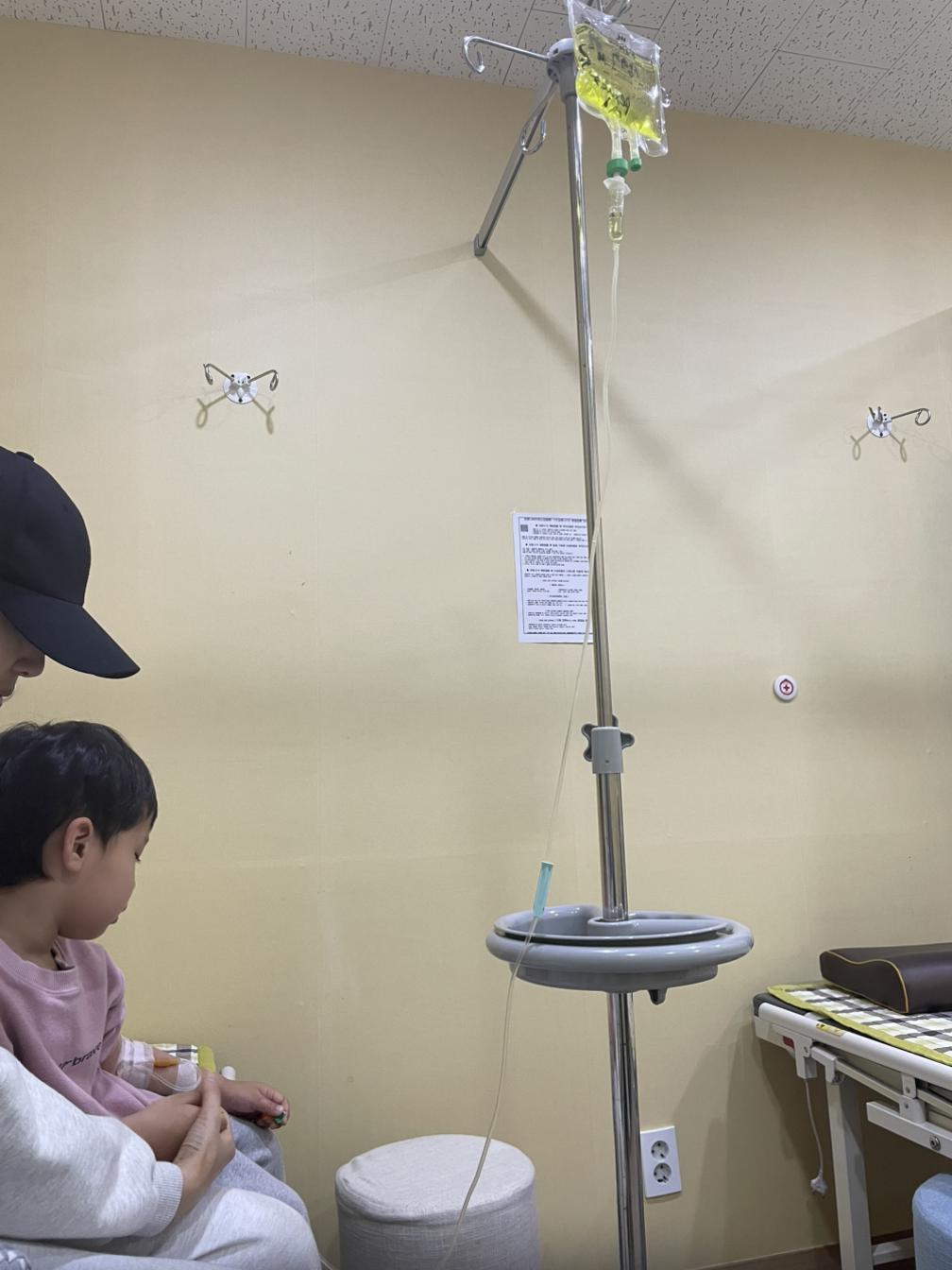낮은 숨소리로 “아파요”를 반복하는 아이를 안고