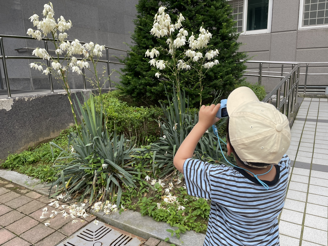 손에 쥔 카메라로 꽃과 나무, 하늘을 담는다.