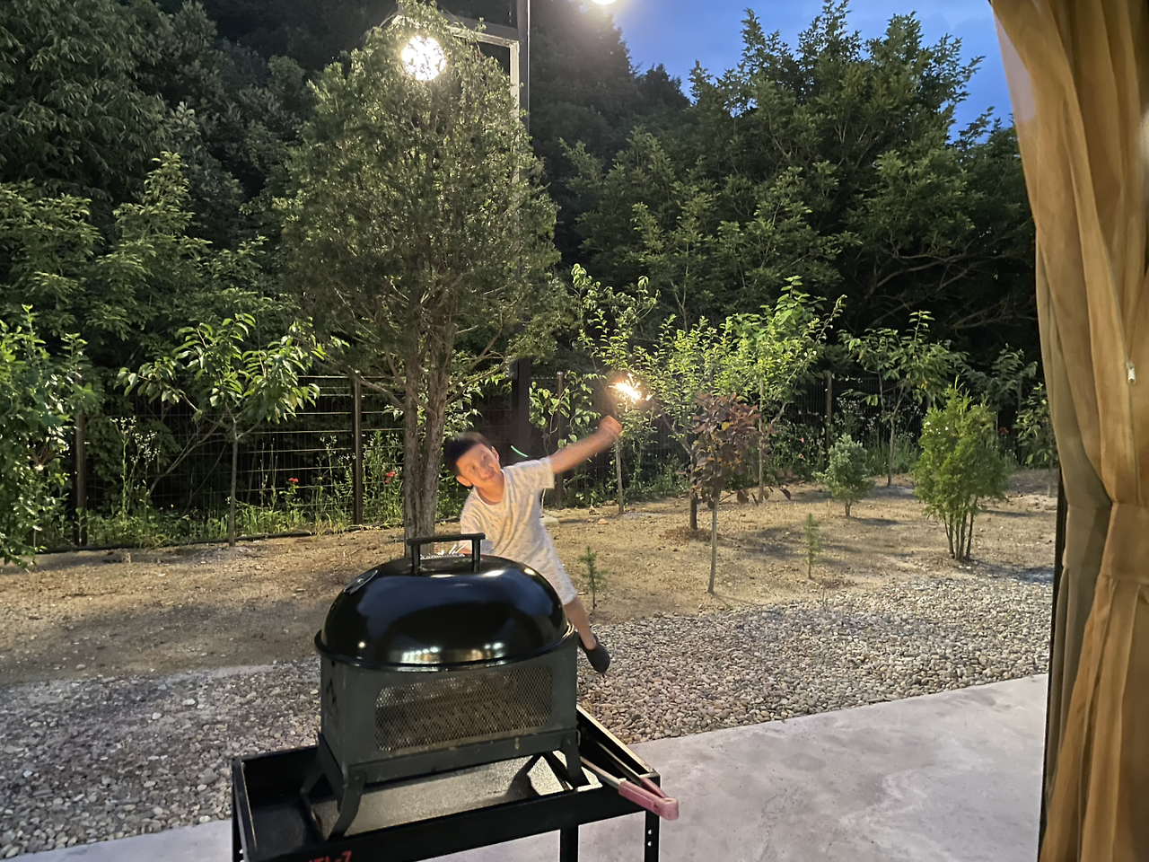 숯불을 피우고 준비해 온 양갈비를 구웠다.