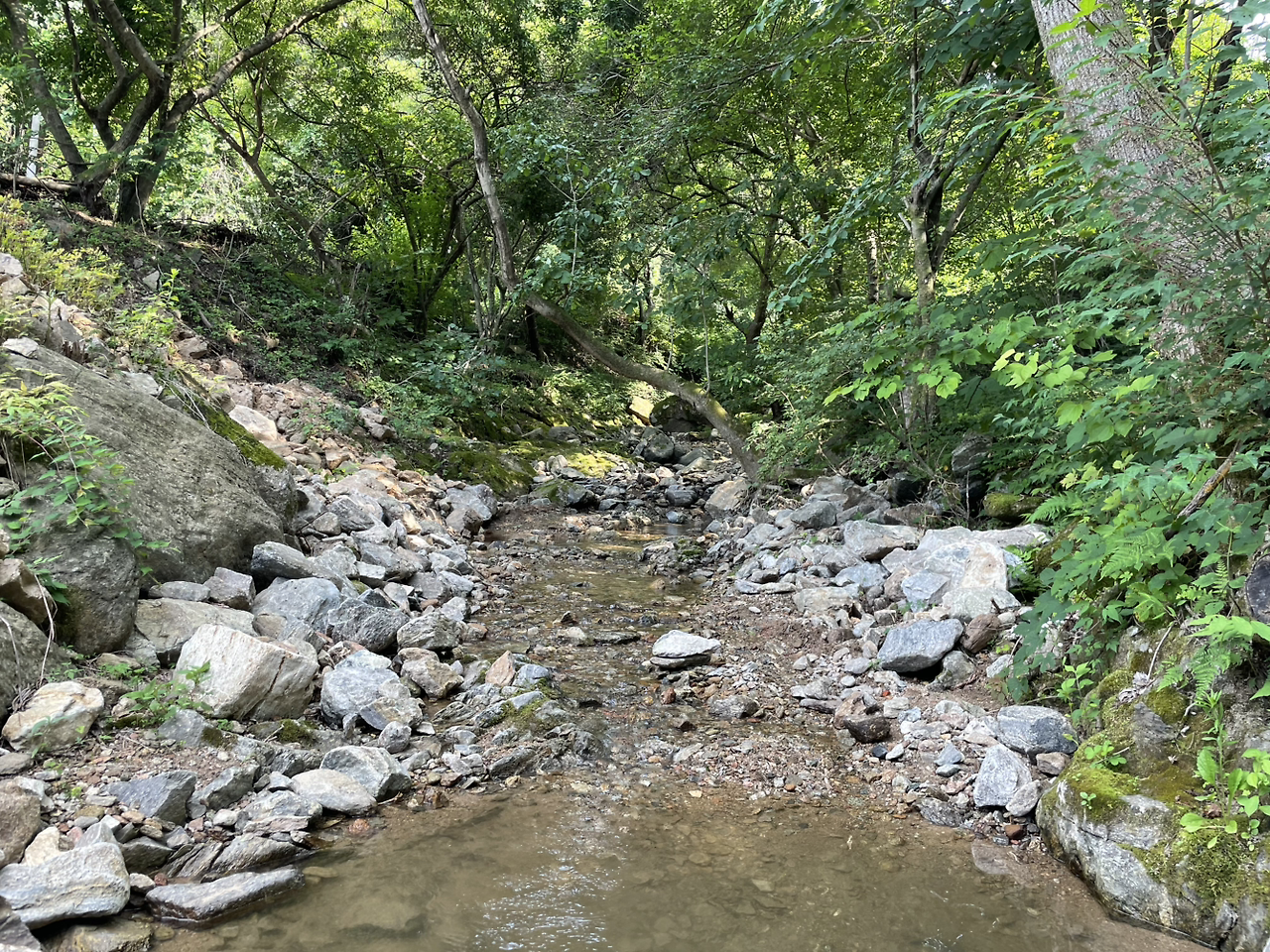 짐을 풀자마자 우주는 개울가로 달려갔다.