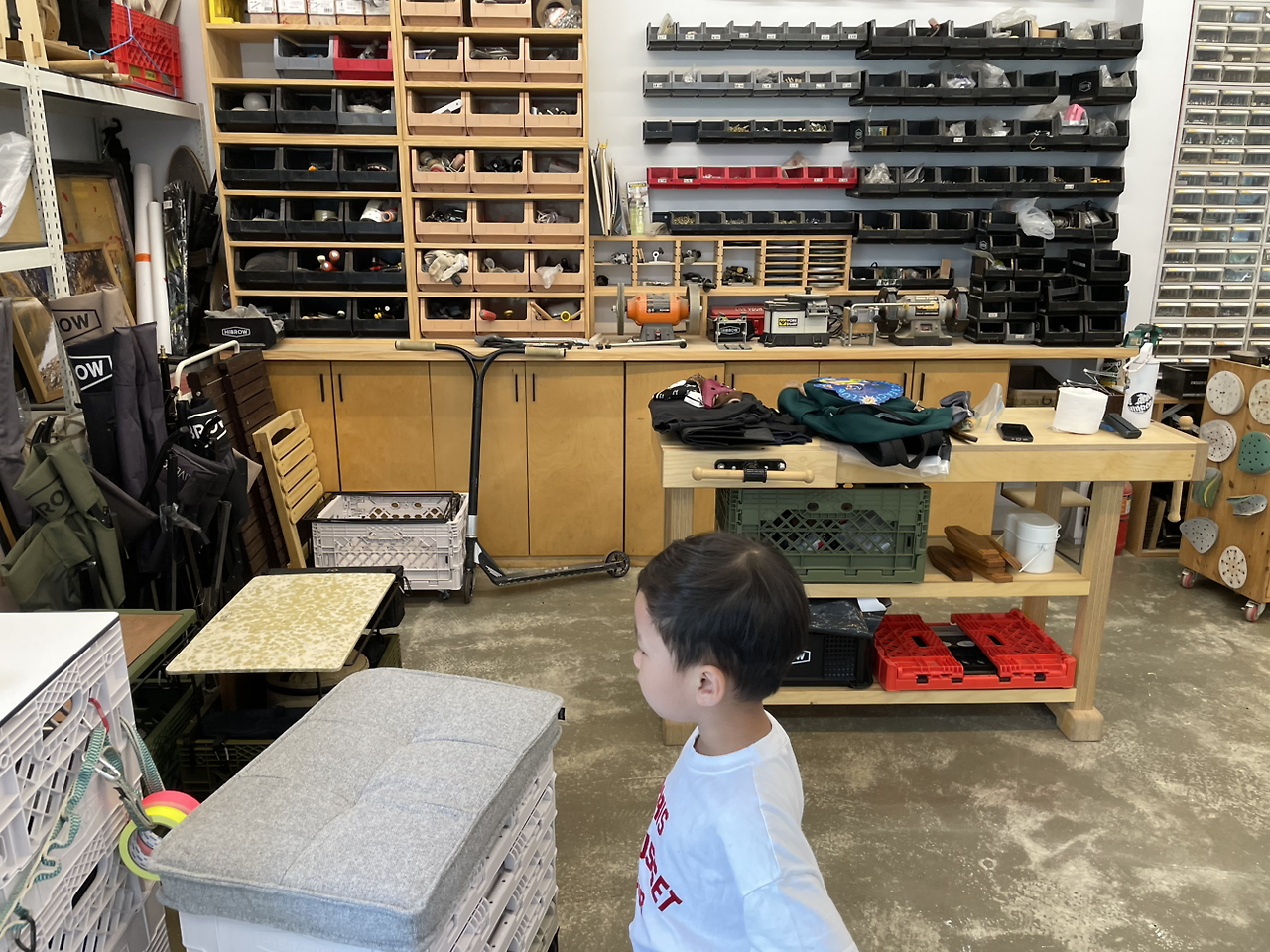 손때 뭍은 친구의 도구들이 가득한 공간.
