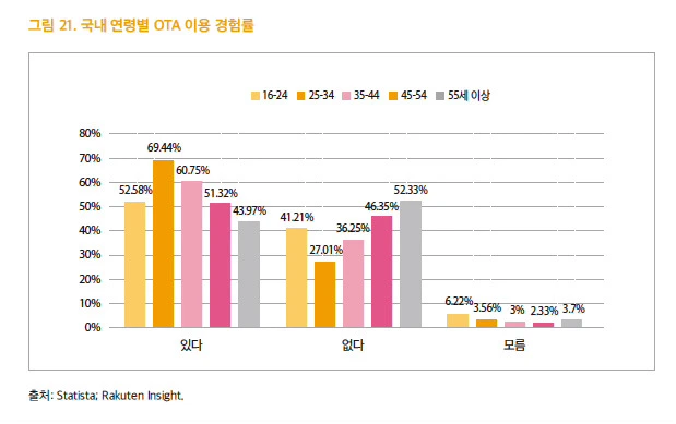 실제로 55세 이상 연령대에게 OTA 플랫폼 이용 경험에 대해 물었을 때, 이용 경험이 없다고 대답한 경우가 52.33%로 더 많았다. 그만큼 해당 연령대에게 OTA 서비스 사용에 익숙하지 않을 수 있다. 이런 상황에서 과연 30대 초반 직장인 지영과 지영의 어머니에게도 트리플이 적합할지 점검해 보았다.
