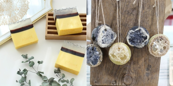 '희야들솝팩토리.희야들공방'에서 판매 중인 (왼)시어버터꿀보습비누와 (오) 수세미 발비누 ©아이디어스