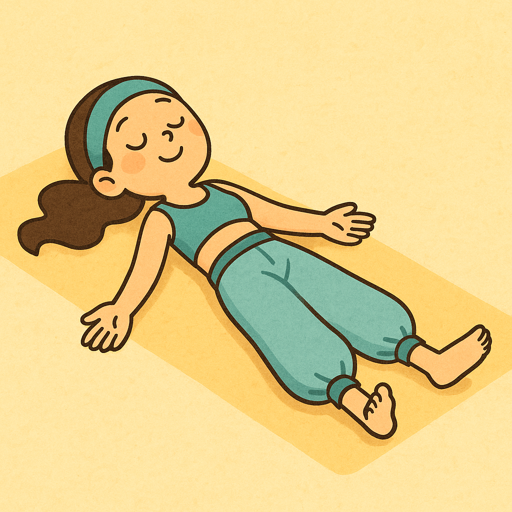 바닥에 똑바로 누워 온몸에 힘을 빼고 눈을 감고 깊이 쉬는 자세다.