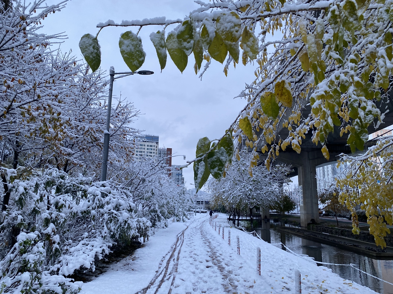 첫눈이 왔다.