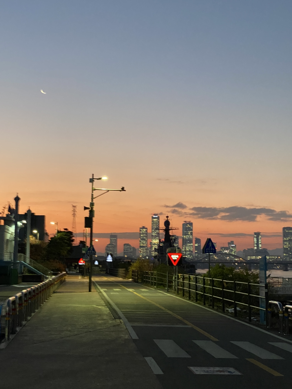 새벽 하늘색이 남색에서 보라색, 진한 주홍색에서 연하게 바뀌어 가는 과정을 보았다.