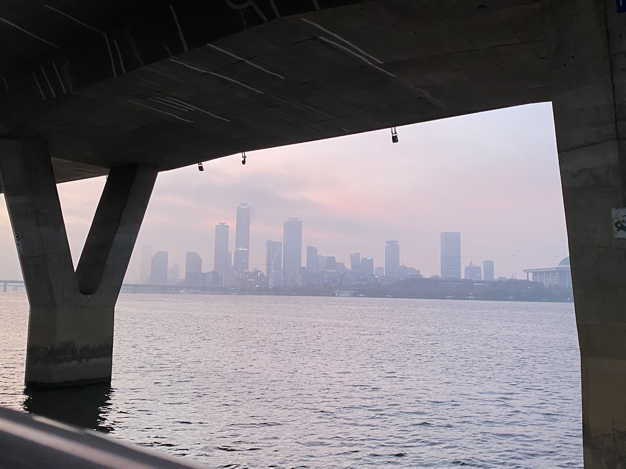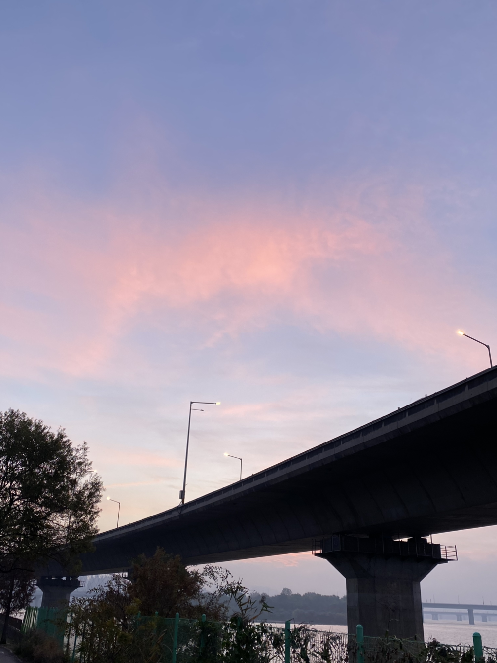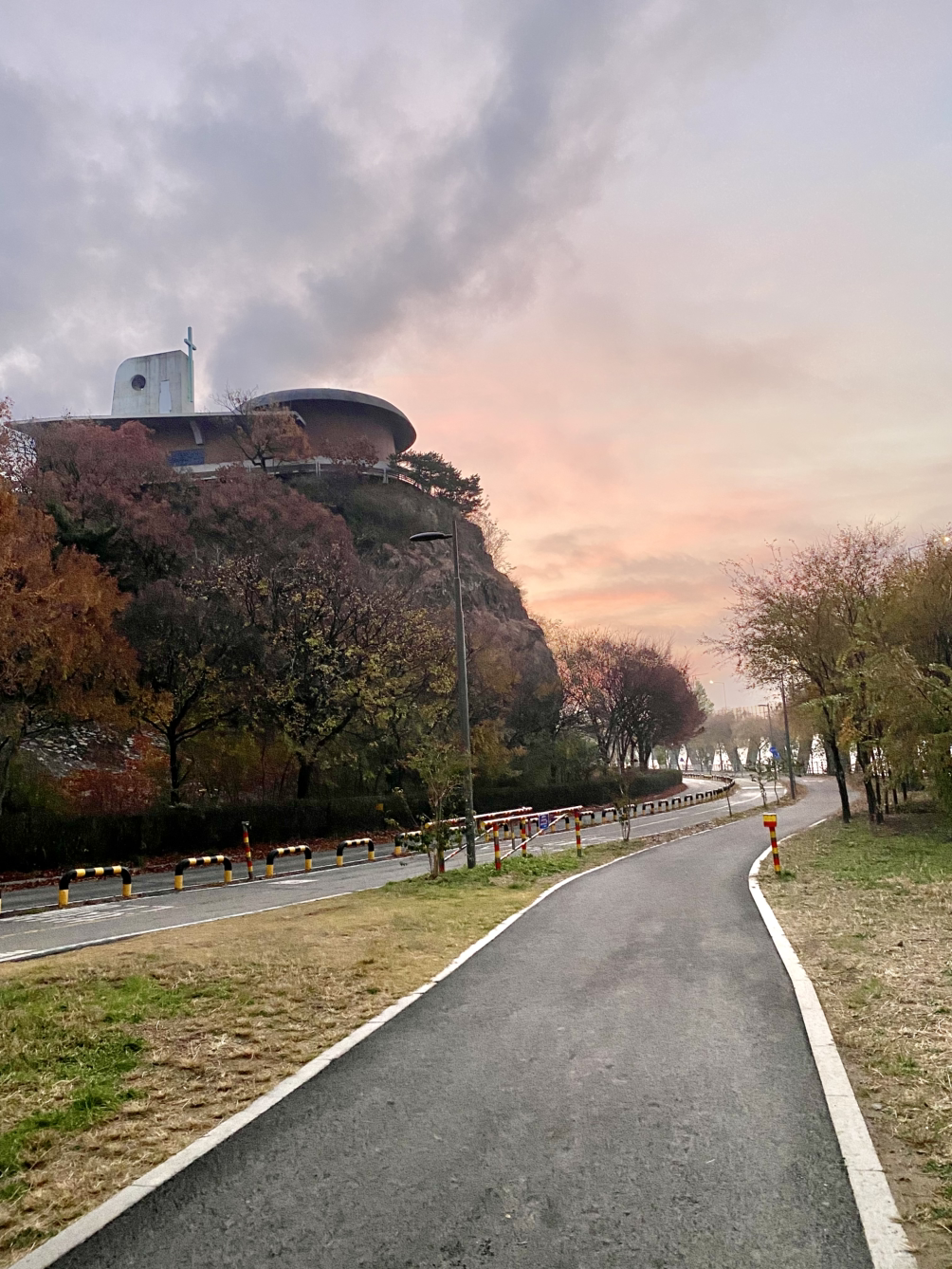 그러다가 내 러닝코스 끝에 절두산 순교성지의 외관이 바로 닿아있다는 것을 알게 되었다. (비전문적인 의견입니다. 나는 이곳이 르 꼬르뷔지에의 롱샹성당의 외관과 비슷하게 보인다.) 새벽에 나가서인지 하늘이 분홍색과 회색이 섞여 있었는데, 내가 제일 좋아하는 장소가 이렇게 내 기존 러닝코스를 조금 더 넘어가면 기다리고 있었을 줄이야. 그 뒤로 3킬로 정도 더 걸어가니 성수역이 나왔고, 기존 망원유수지 한강변과 다른 고적한 분위기가 참 좋았다. 평일에는 무리가 되니까 안되고 주말코스로는 꼭 조금 더 걸어서 이곳을 정기적으로 보아야겠다.
