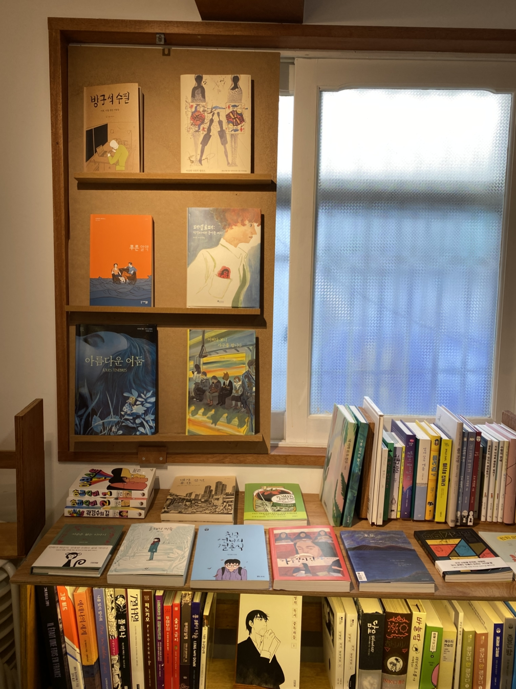 그러다 짧게 책방죄책감에 들러 한겨레 그림책/ 그래픽노블 스토리텔링 수업 결과물을 전시하는 것을 함께 보고 다 벽에 걸어진 그림들을 보고 기뻤다. 내년에 여기서 우리 둘의 전시도 1월과 2월에 열릴 예정이다.