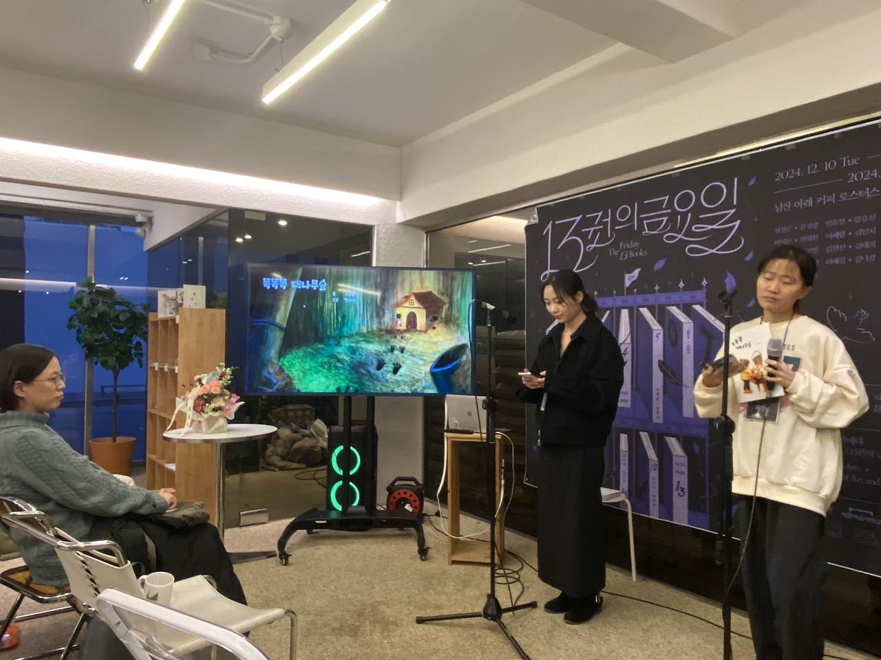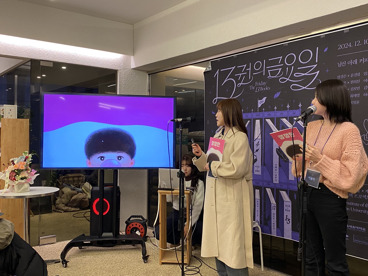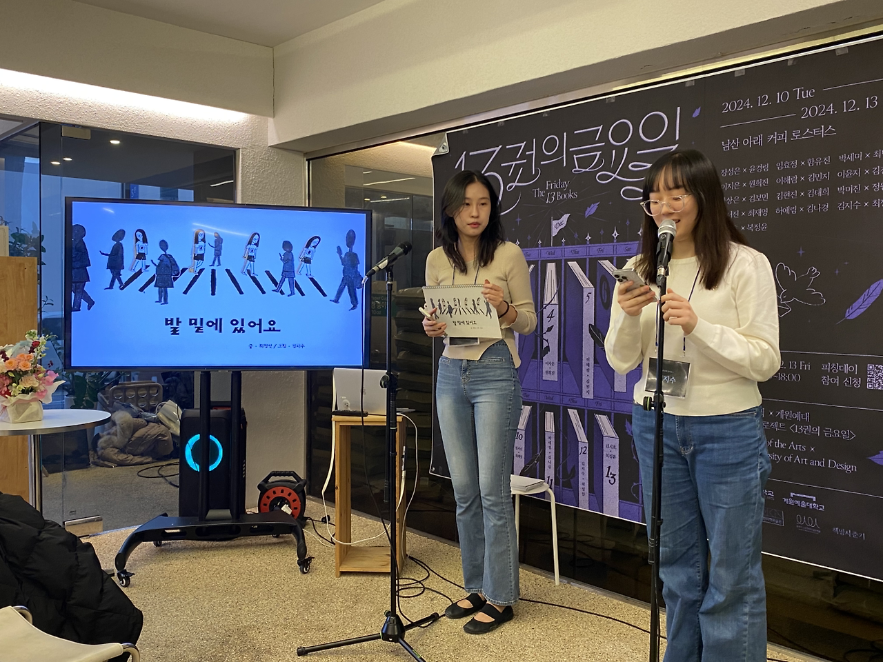 나는 주변의 분위기를 잘 신경 쓰고 눈치 보지 않는다고 생각했는데 은근히 스트레스였는지 지난 일주일간 집중이 잘 안 돼서 괜히 유튜브나 보고 책을 넘겨도 많이 넘어가지 못했다. 어제도 결국 낮에 자다가 깨서 퉁퉁 부은 얼굴로 일어나서 세시에 부랴부랴 집을 나섰다. 서울예술대학과 계원예술대학의 학생들이 함께 한 권의 책을 만드는 프로젝트의 마지막 프레젠테이션 날이었고 약간 지각할 것 같아서 명동역부터 막 뛰어서 겨우겨우 도착했다. 나는 여름부터 계원예대에 특강을 시작, 두 팀의 멘토링을 했었기에, 행사장에 도착하니 낯익은 얼굴들이 많이 보였다. 도착해서 물 세잔 마시고 뒤에 서있다가 학생들의 프레젠테이션 시간에 잘 보고 싶어서 안경 쓰고 맨 앞줄로 갔다. 작년과는 사뭇 분위기가 더 정리가 잘되어진 더미북 전시부스와 간결한 3분 프레젠테이션, 짧은 시간 안에 프로젝트를 마무리하고 서로 협력하려는 학생들의 분위기가 참 좋았다.
