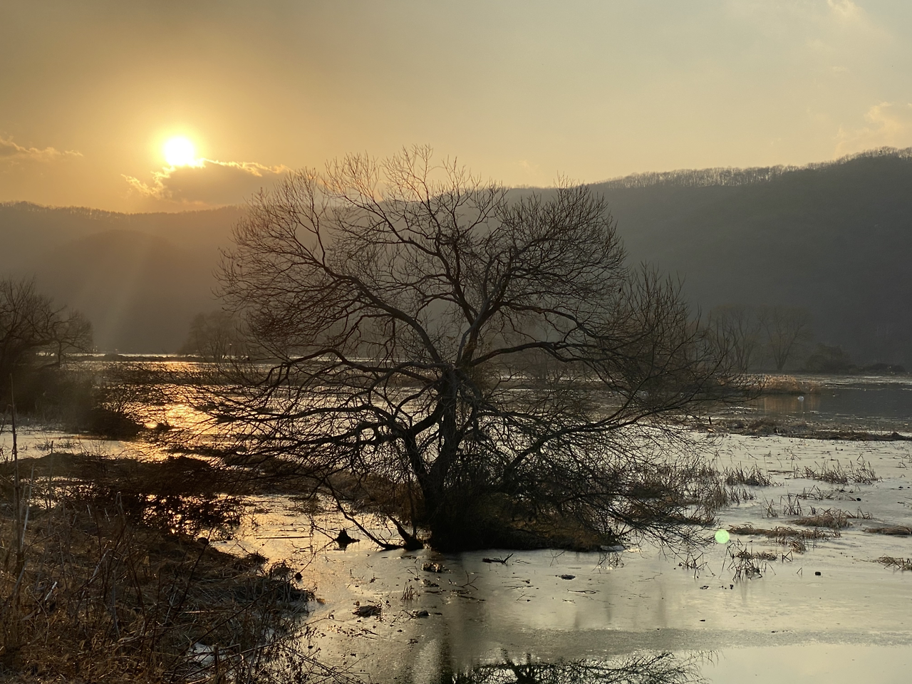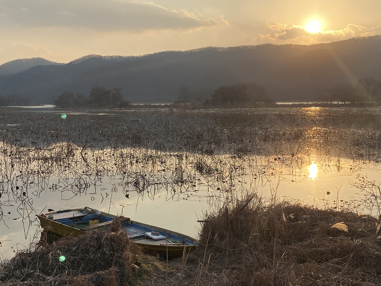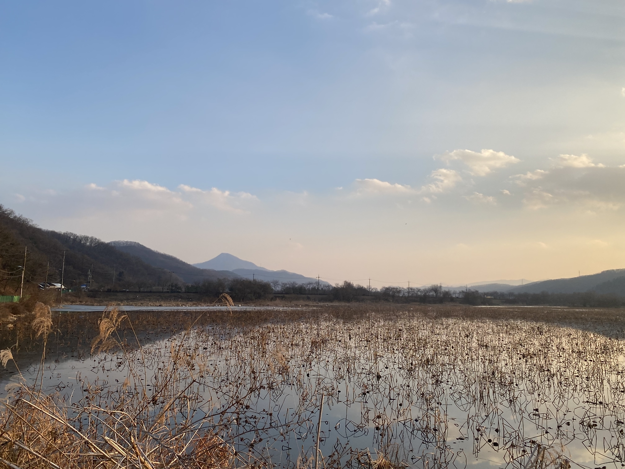 저녁시간을 향해가는 습지의 모습이 노랗게 물들어 가면서 점점 빛이 났다.