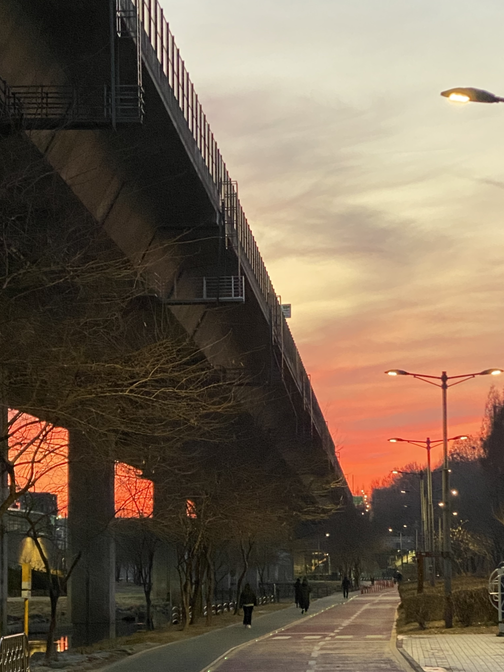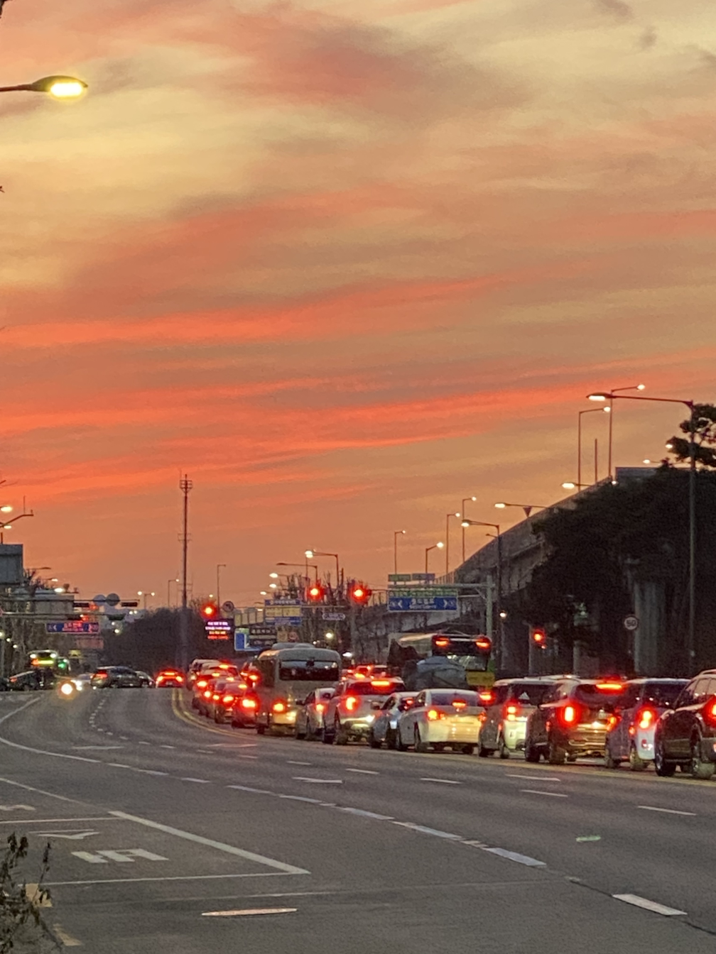 그리고 다행히도 다시 잠이 들었고 아이가 나오는 예상치 못한 장소에서 감정이 해소되는 꿈을 꾸었고, 그날은 모든 것이 다 예상치 못한 일들의 연속이었고, 저녁 하늘은 나처럼 상태가 이상했다.