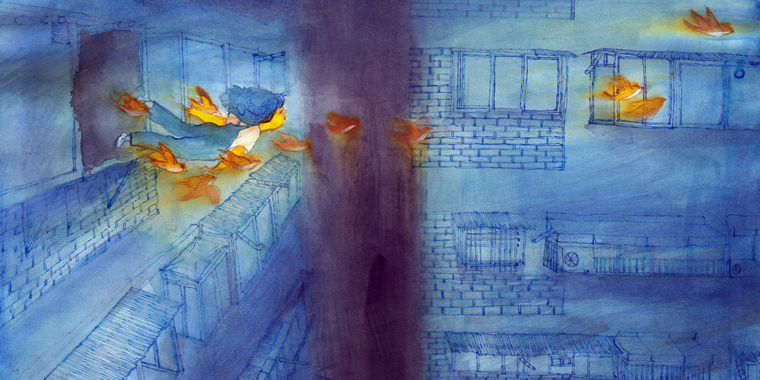 그 뒤로 몇 년 후에, 나의 두 번째 창작 그림책을 출판할 수 있었다. 여전히 여러 가지 물음표가 떠오르는데, 아직 나도 나의 이야기들에 충분한 답을 내지 못했고 자신감도 없었다. 인내심 많은 편집자님들의 도움으로 겨우 겨우 책을 끝마칠 수 있었다. 그 뒤로 몇 년 동안 무언가 그림을 그리고 글을 쓰는 것이 자꾸 망설여졌다. 내 이야기는 흔히 말하는 아이들에게 ‘꿈’과 ‘희망’을 주는 그런 이야기는 확실히 아닌 것 같았다. 어떤 ‘꿈’과 ‘희망’이 이렇게 어둡게 푸르고 회색빛으로 그려진단 말인가? 이런 그림자 같은 이야기들이 어떤 힘을 낼 수 있을까?