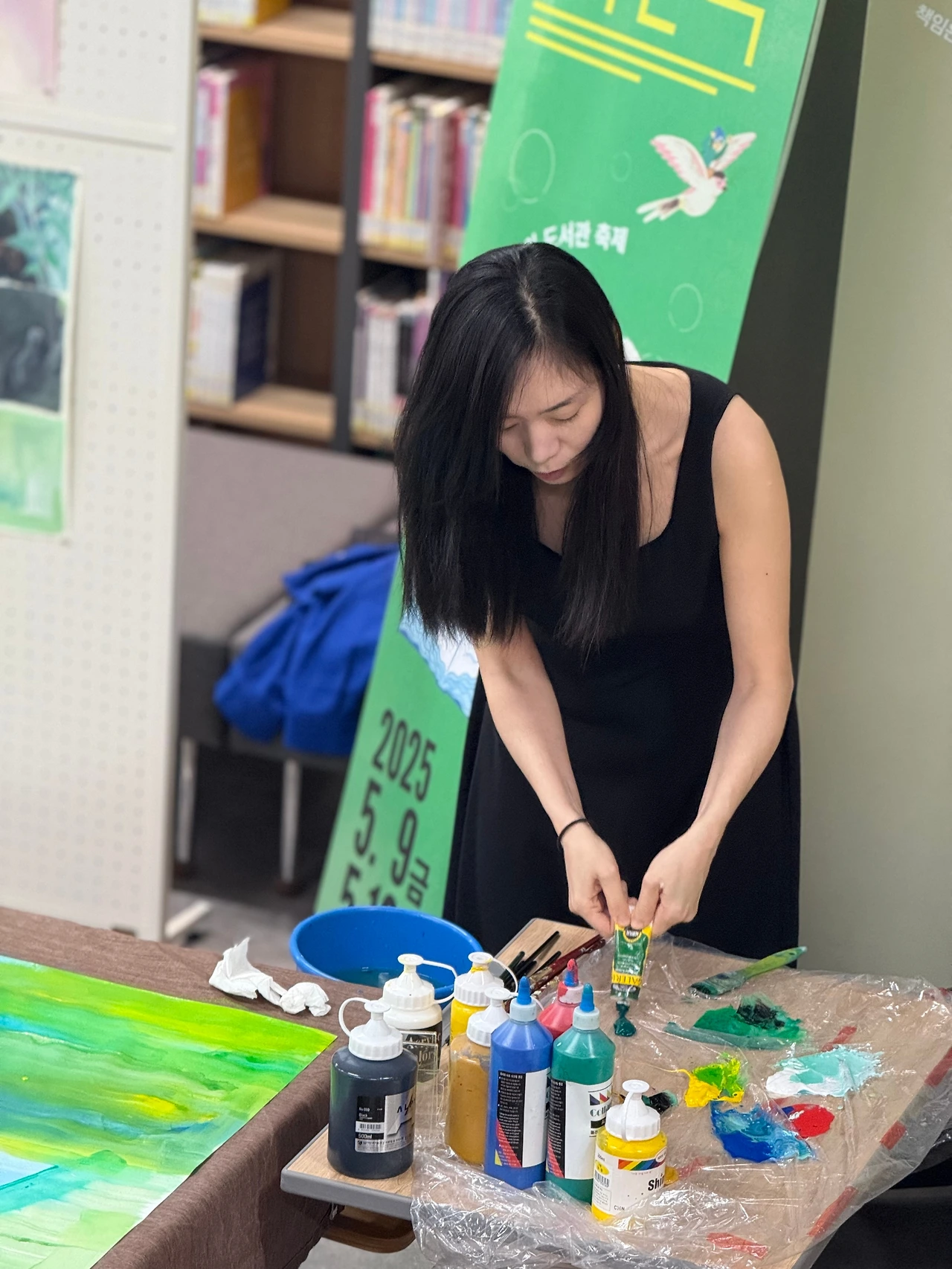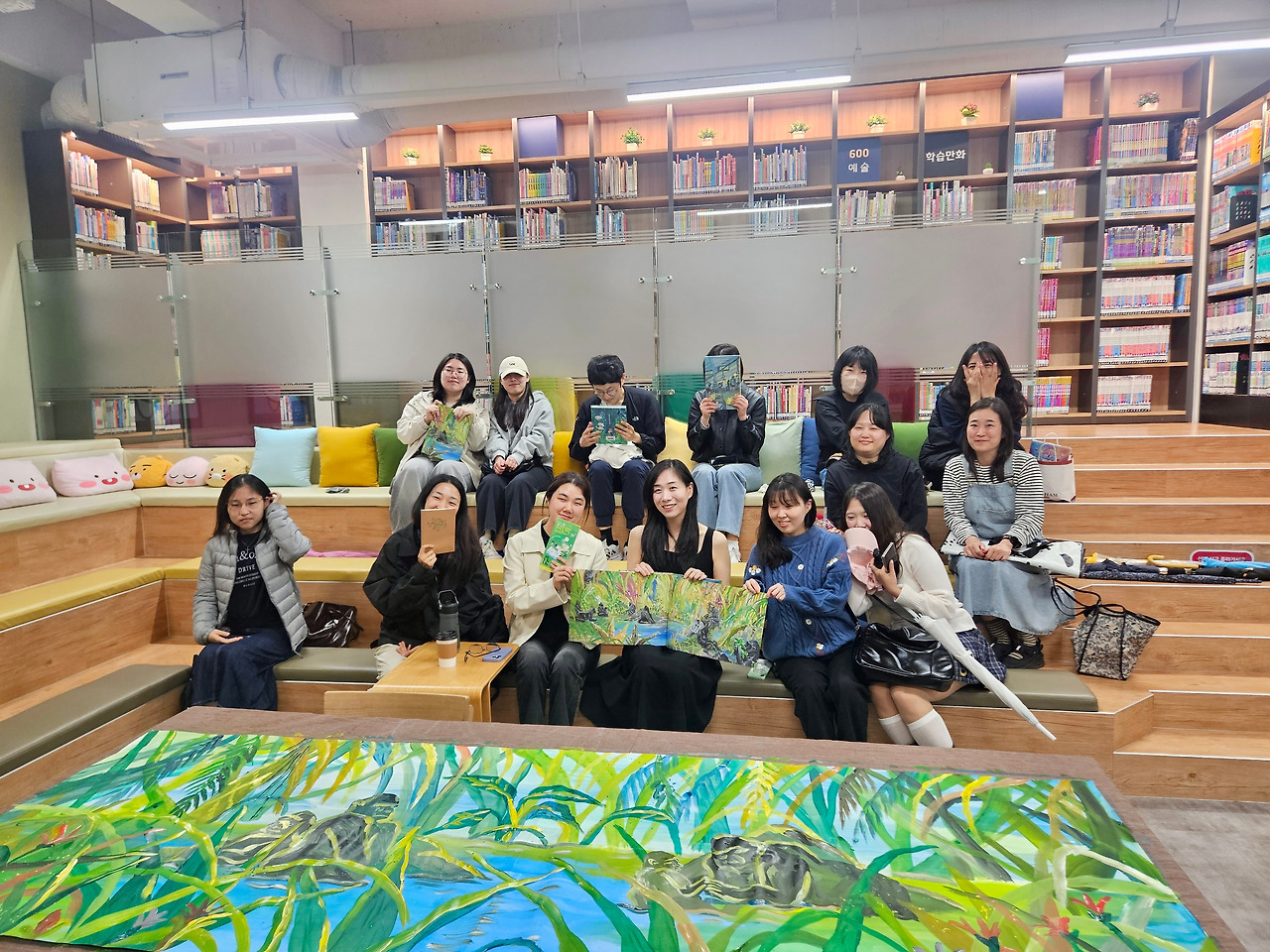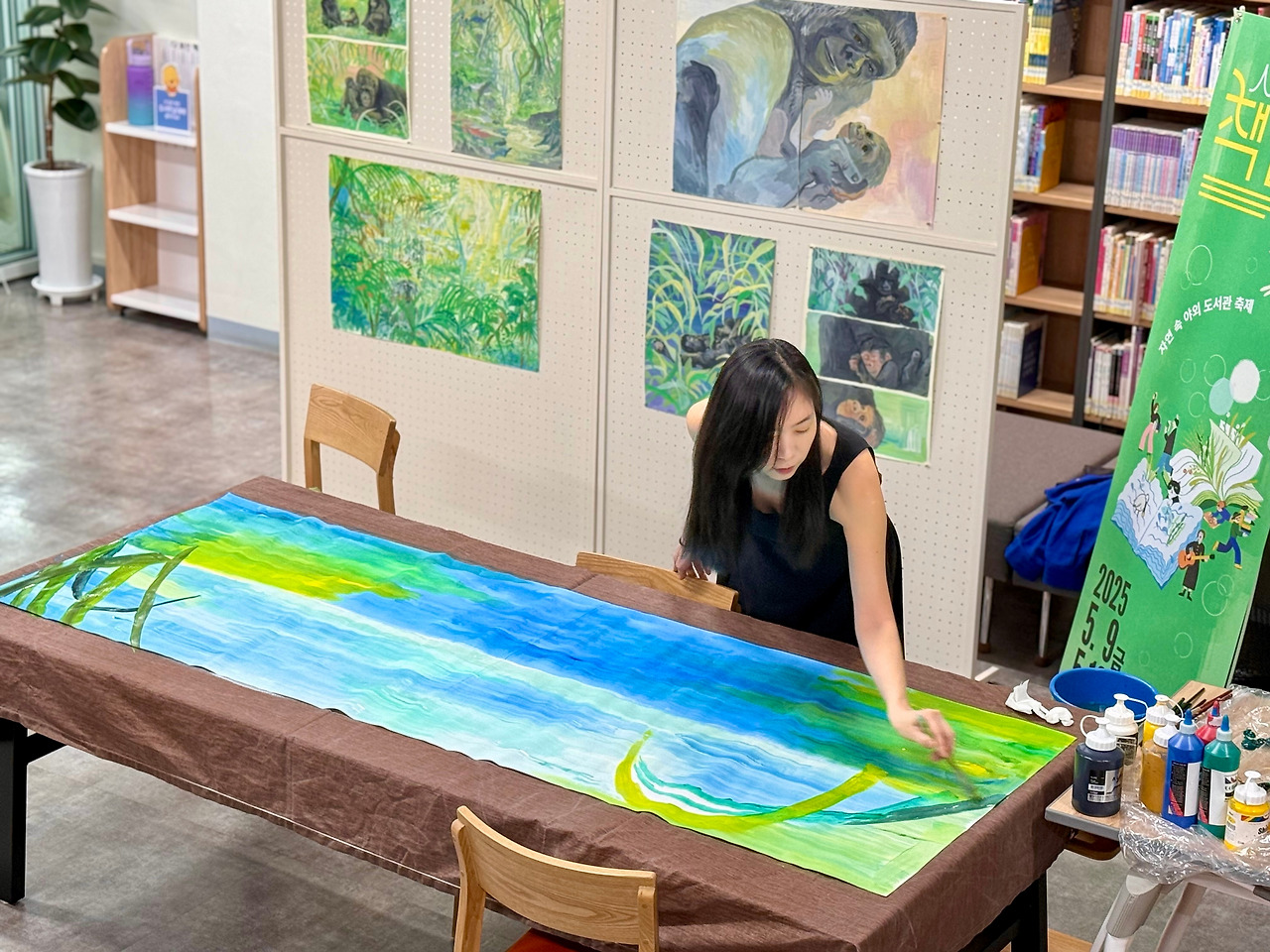시흥책모락 행사 [고릴라의 뒷모습]라이브 페인팅을 비가와서 급히 도서관에서 진행하게 되었다.