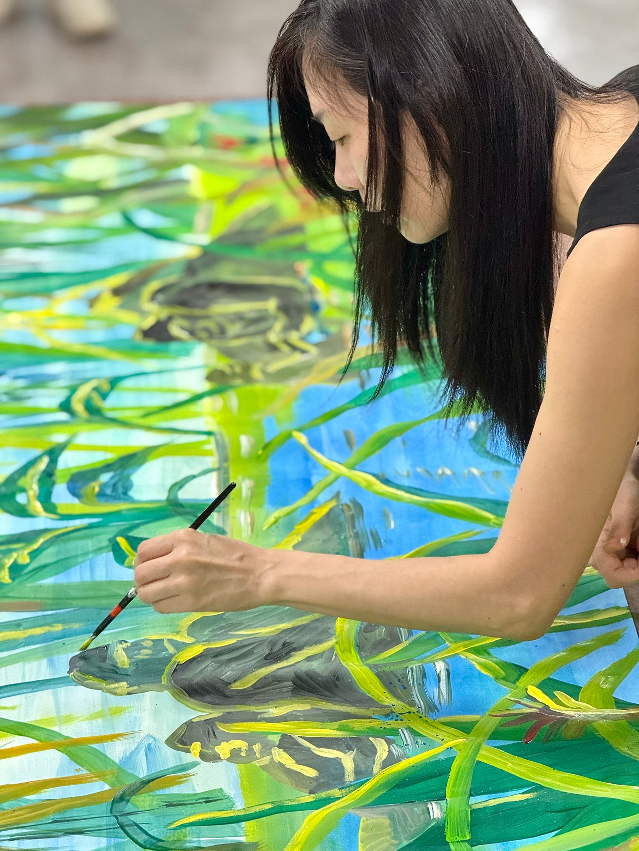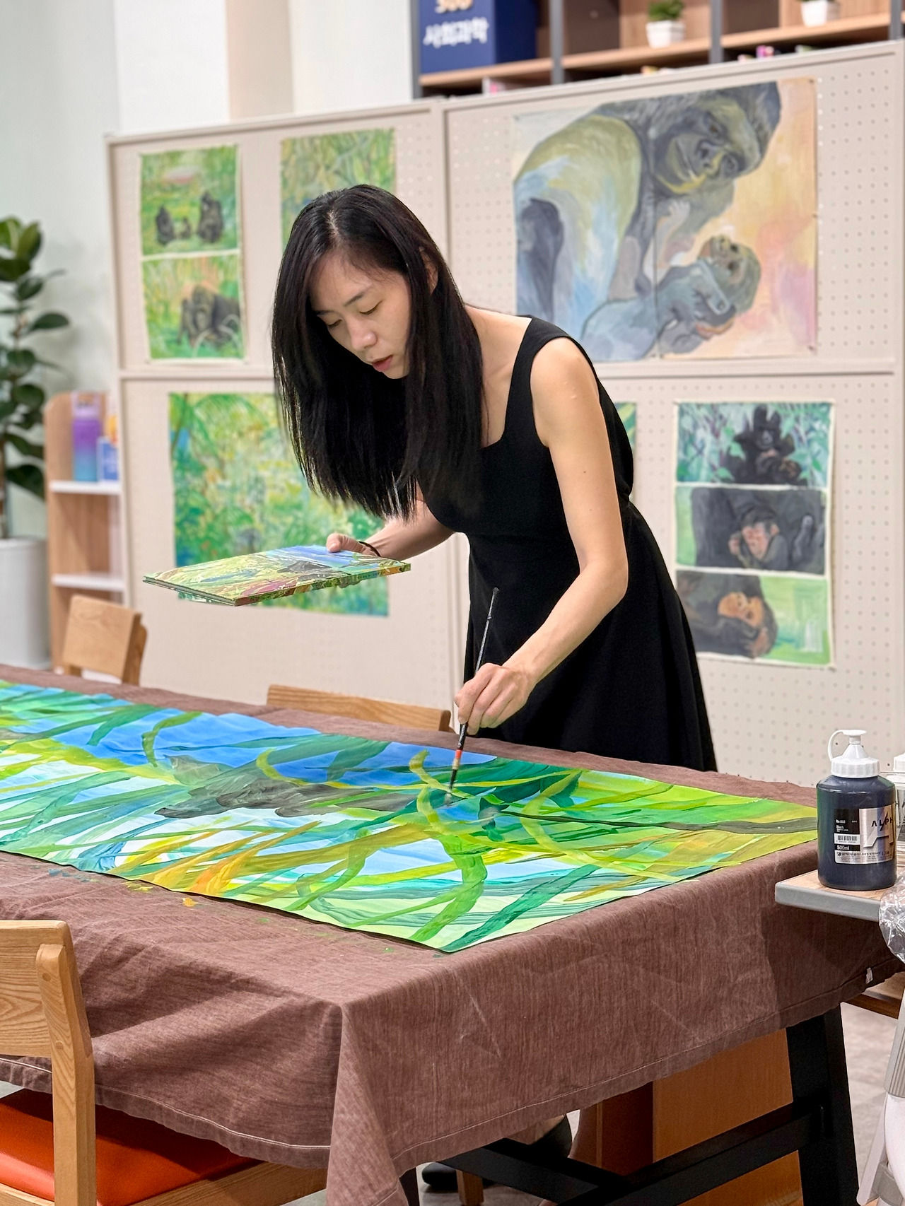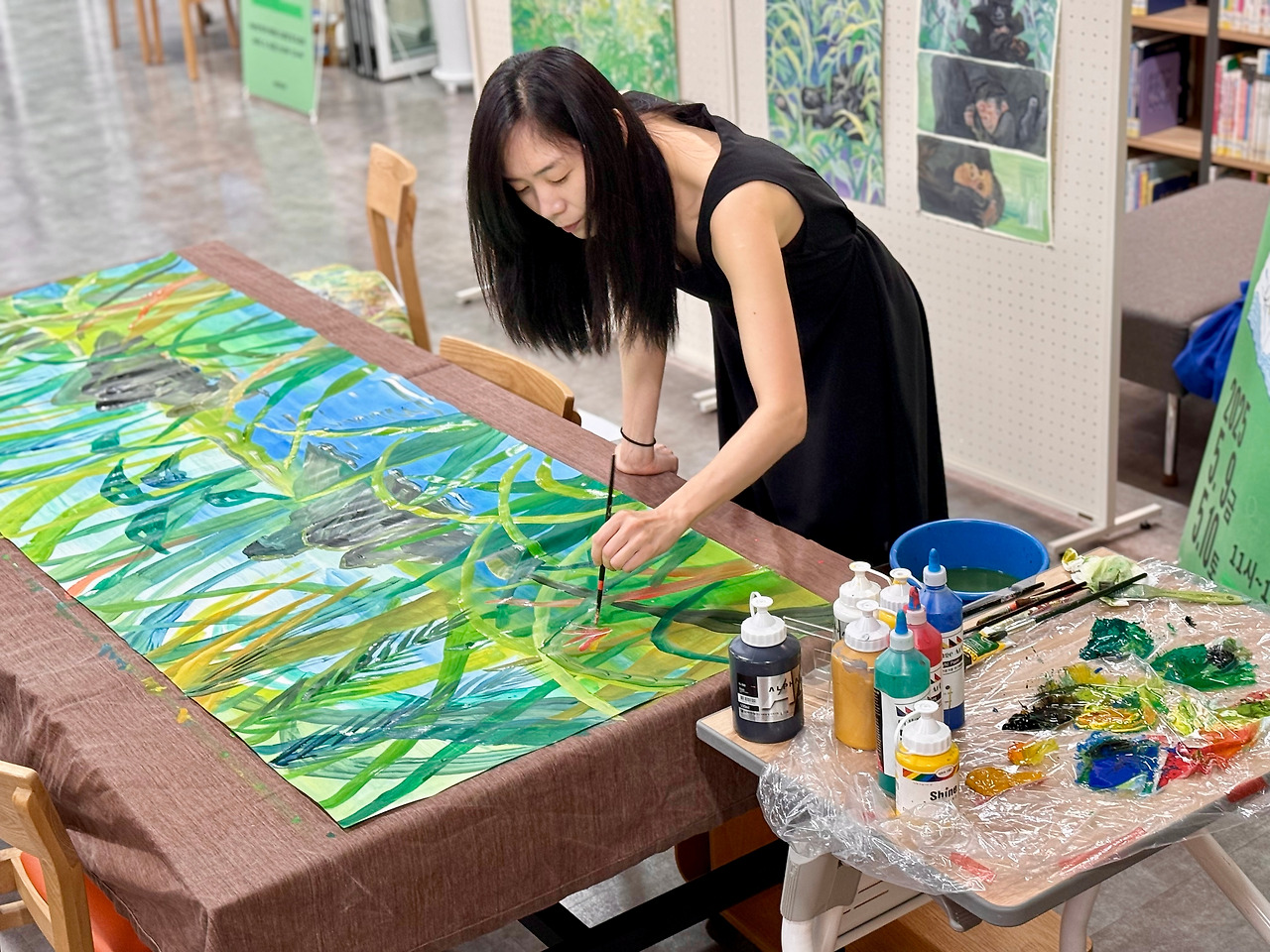 시흥책모락 행사 [고릴라의 뒷모습]라이브 페인팅을 비가와서 급히 도서관에서 진행하게 되었다.