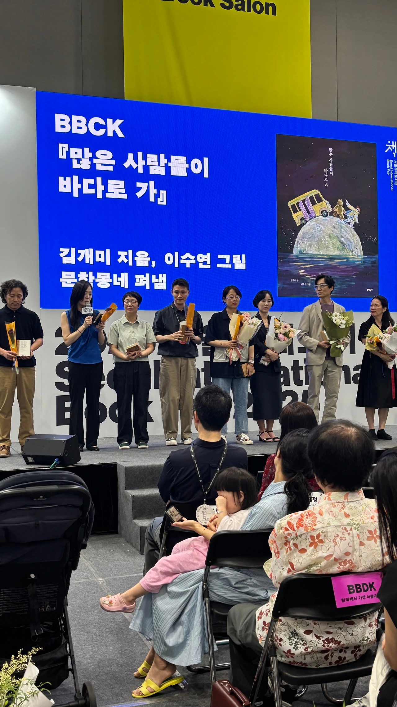 한국에서 가장 좋은 책, 시상식에 [많은 사람들이 바다로 가]로 참석하게 되었다. 현아 @ahaha_haha2022 의 [빨개져버린]도 함께 선정되었고, 현아의 수상소감을 듣고 너무 놀랐는데 감동 받았다. 현아와 파티에서 @pati_illustration_studio 무려 세학기를 함께 책을 만들었었다. 벌써 몇 년전 일이지만, 그 모든 차곡 차곡 쌓여가는 시간들이 참 소중하다. 함께 기억해줘서 고맙다. 전설같은 김동성작가님이 첫 창작 그림책 [꽃에 미친 김 군]으로 대상을 받으셨다. 축하합니다. 작가님!