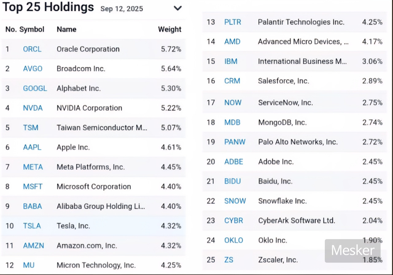 여기에 팔란티어, 팔로알토 네트웍스, 사운드하운드 AI 같은 신흥 AI 기업도 포함되어 있습니다.