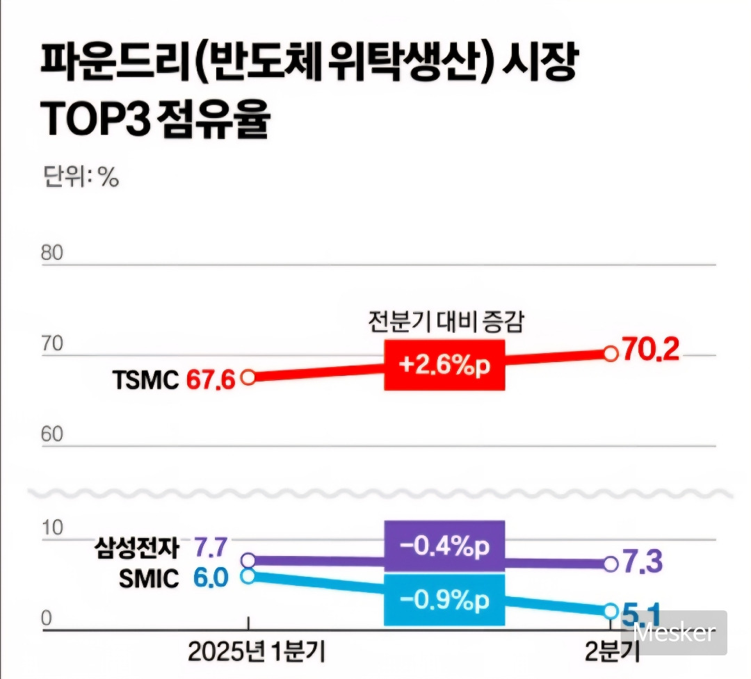 TSMC는 독보적인 기술력으로 글로벌 기업들의 줄을 세워놓고 있어요. 2위 삼성전자와도 격차가 클 만큼, 사실상 독점적인 위치죠.
