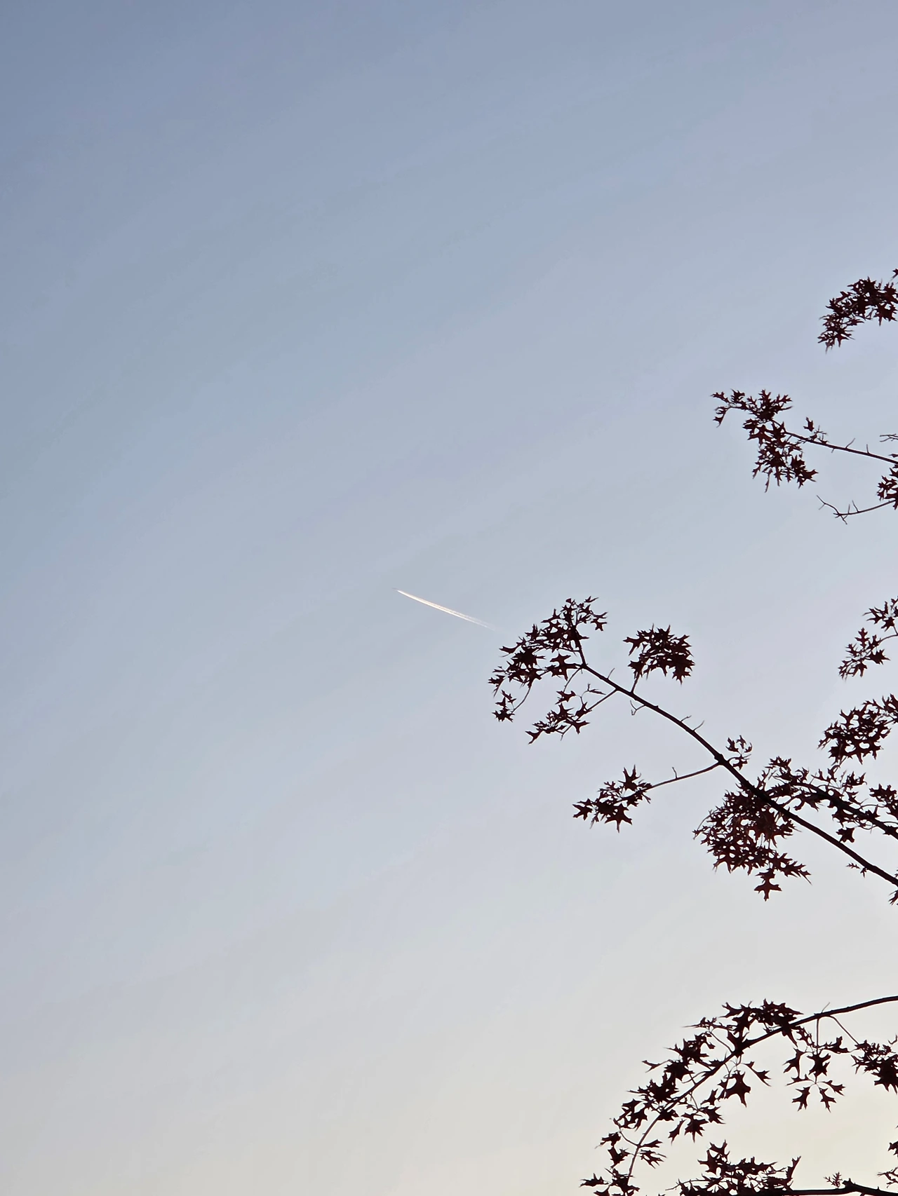 시간이 남아 우연히 들린 공원에서 비행기가 날아가는 모습을 봤습니다. 항공운이 선명한 것으로 봐서는 전투기일지도요. 나무 밑에서 슬쩍 쳐다보니 마치 나뭇가지에서 무언가를 쏘아 올리는 모습처럼 보여 내가 본 것을 남기려고 나무 밑동 근처에서 게걸음을 한참동안 했습니다. 내가 본 것에는 못 미치지만, 그나마 이 정도면 비슷해요.