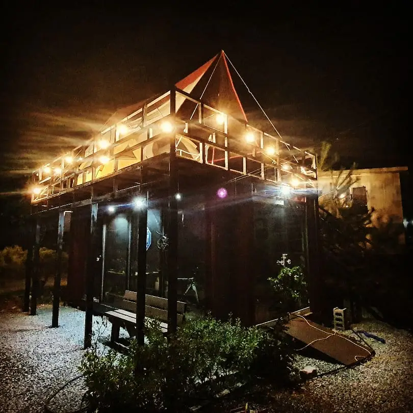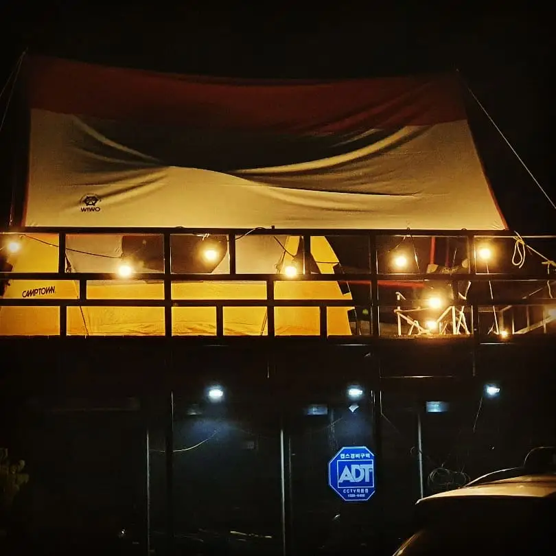감성적인 분위기 연출을 위해 알전구도 연결해 주고, 텐트도 치고 ...