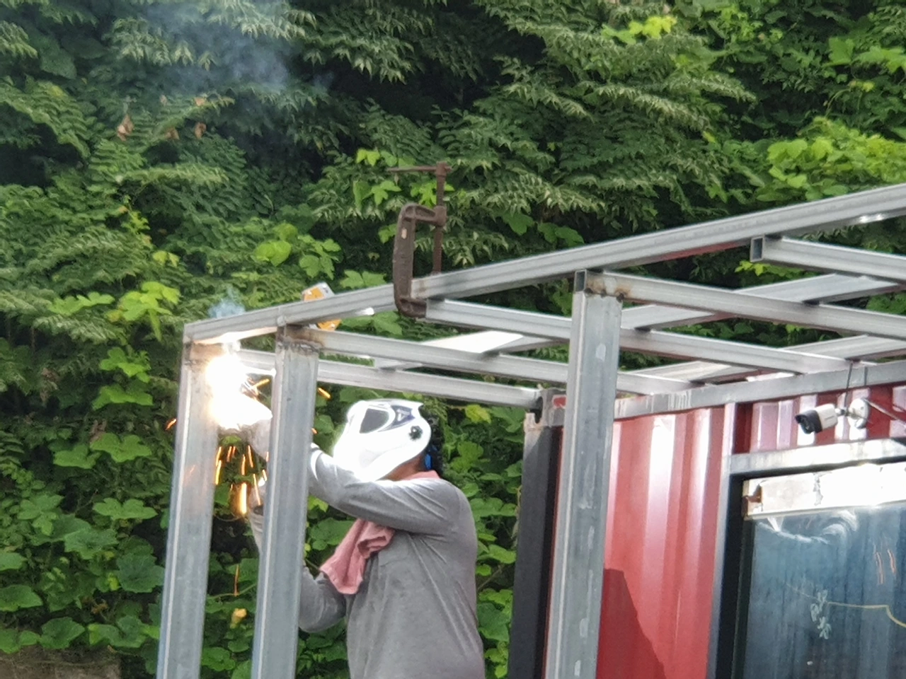 용접기를 사들이고 각관이며 방부목을 주문했다.