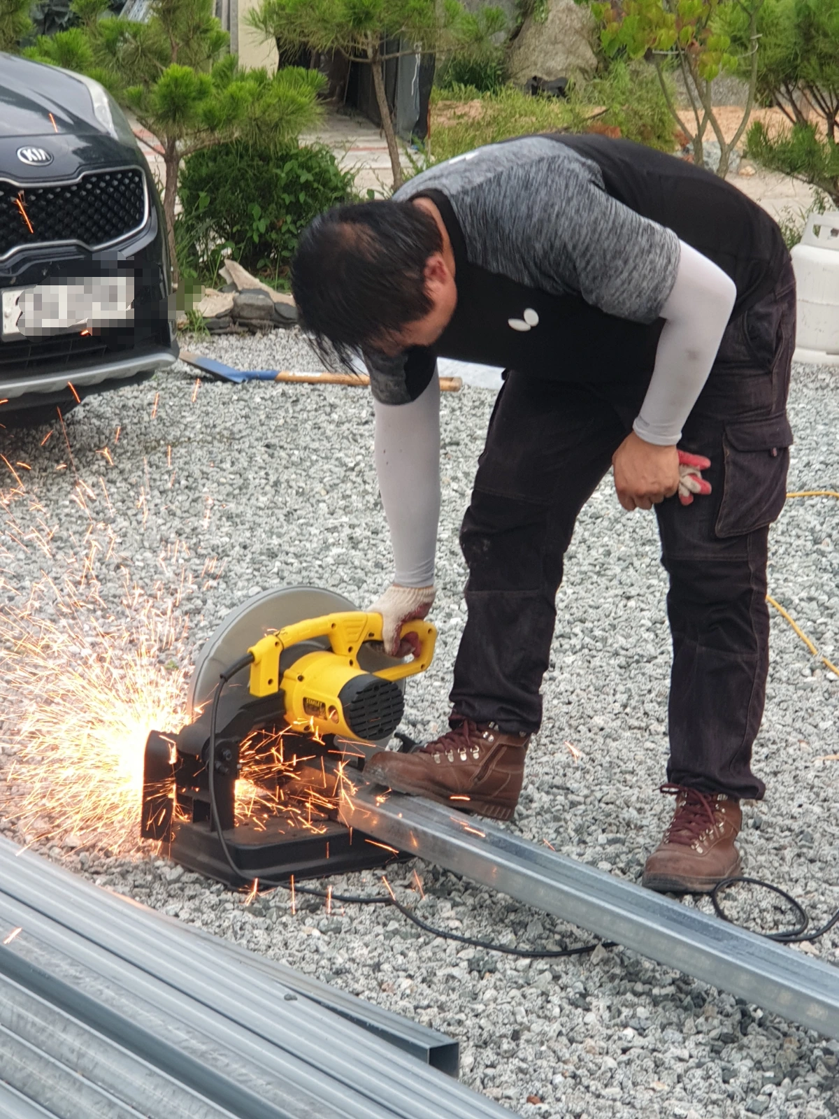 저 많은 각관들을 언제 다 재단하면서 용접하고 도색해서 완성할까?