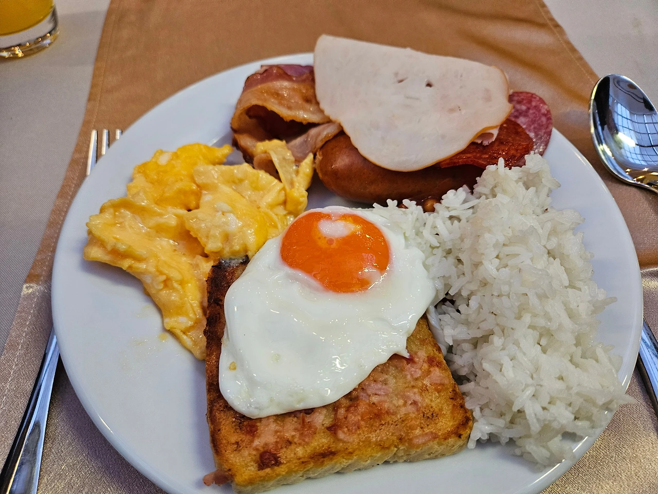 조식은 매우 만족스러웠다. 하지만 처음 먹어보는 소시지의 육즙은 나를 여드름 덩어리로 만들었다.