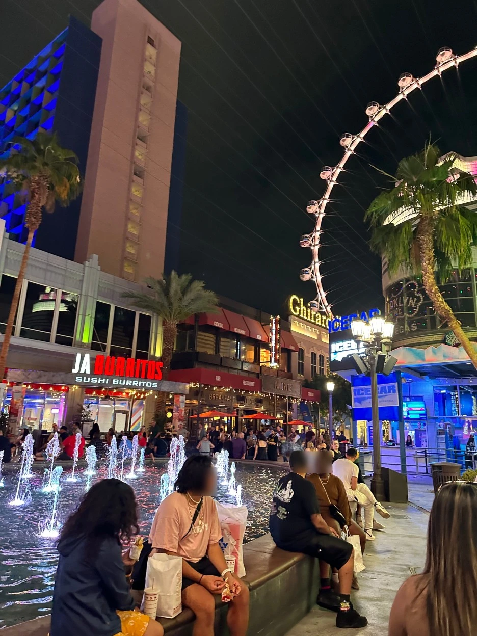 밤 산책이라니! 총과 마약이 난무하는 나라에서 밤 산책이라니! LA에서는, 심지어 샌디에이고에서도 상상도 못할 일이었다. 하지만 라스베이거스에선 모두가 나름의 관광을 즐기는 인파 사이에서 나 역시도 긴장을 잠시 내려놓고 밤 산책을 즐겼다. 물론, 고약한 대마초 냄새는 간간이 났지만 다들 웃으며 돌아다니는 분위기에 나도 선뜻 낯선 이에게 핸드폰을 쥐어주고 사진을 찍어달라고 요청하기도 하고, 여기저기 돌아다니며 호텔과 가게를 구경했다.