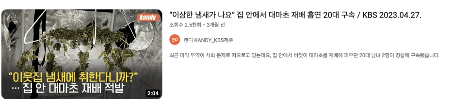 현재 한국에서 대마초는 의료용으로만 재배, 유통하고, 성인 기호 식품은 아니다. 앞으로도 영원히 기호 식품이 되지 않았으면 좋겠다. 정말이지 길거리에서, 지하철과 버스에서, 화장실 어디에서, 뒷골목에서, 건물 사이에서 느슨해진 정신머리의 향 따윈 맡고 싶지 않다.