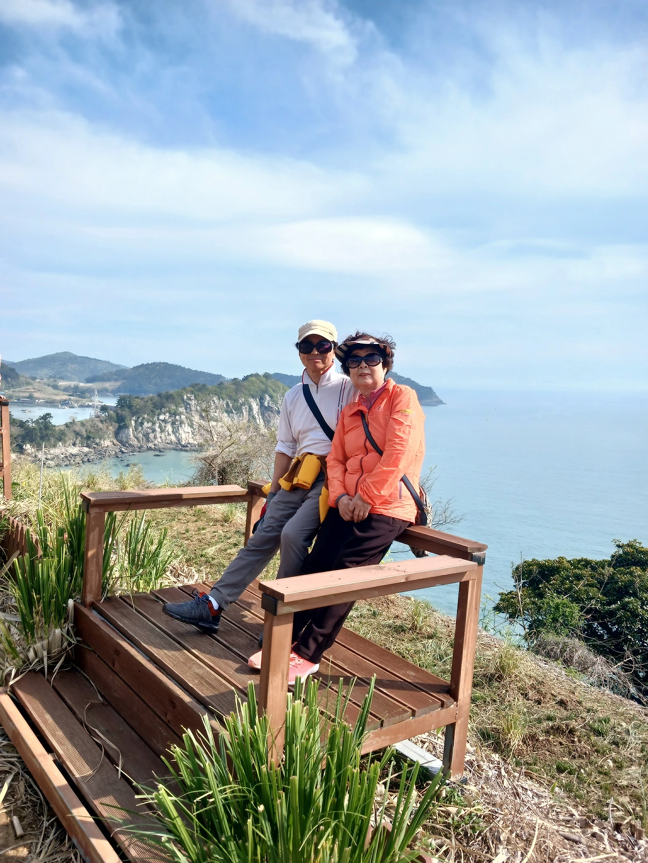 쑥섬은 아주 작은 섬으로 개인이 땅을 사서 정상에 정원을 예쁘게 꾸민 곳이다. 둘레길을 따라 10여분 올라가니 산의 정상이 나왔다. 사방이 바다로 둘러싸여 쪽빛 하늘과 바다가 어우러져 기가 막힌 경치를 만들어 냈다. 거기에 이름 모를 야생화 꽃밭이 있고 저마다 향기와 아름다움을 발산하고 있었다. 마치 천상계에 와 있는 기분이었다. 기념사진을 몇 장 찍고 1시간여 둘레길 트레킹과 야생화 정원, 바다 내음으로 행복감을 만끽하고 배를 타고 육지로 나왔다.