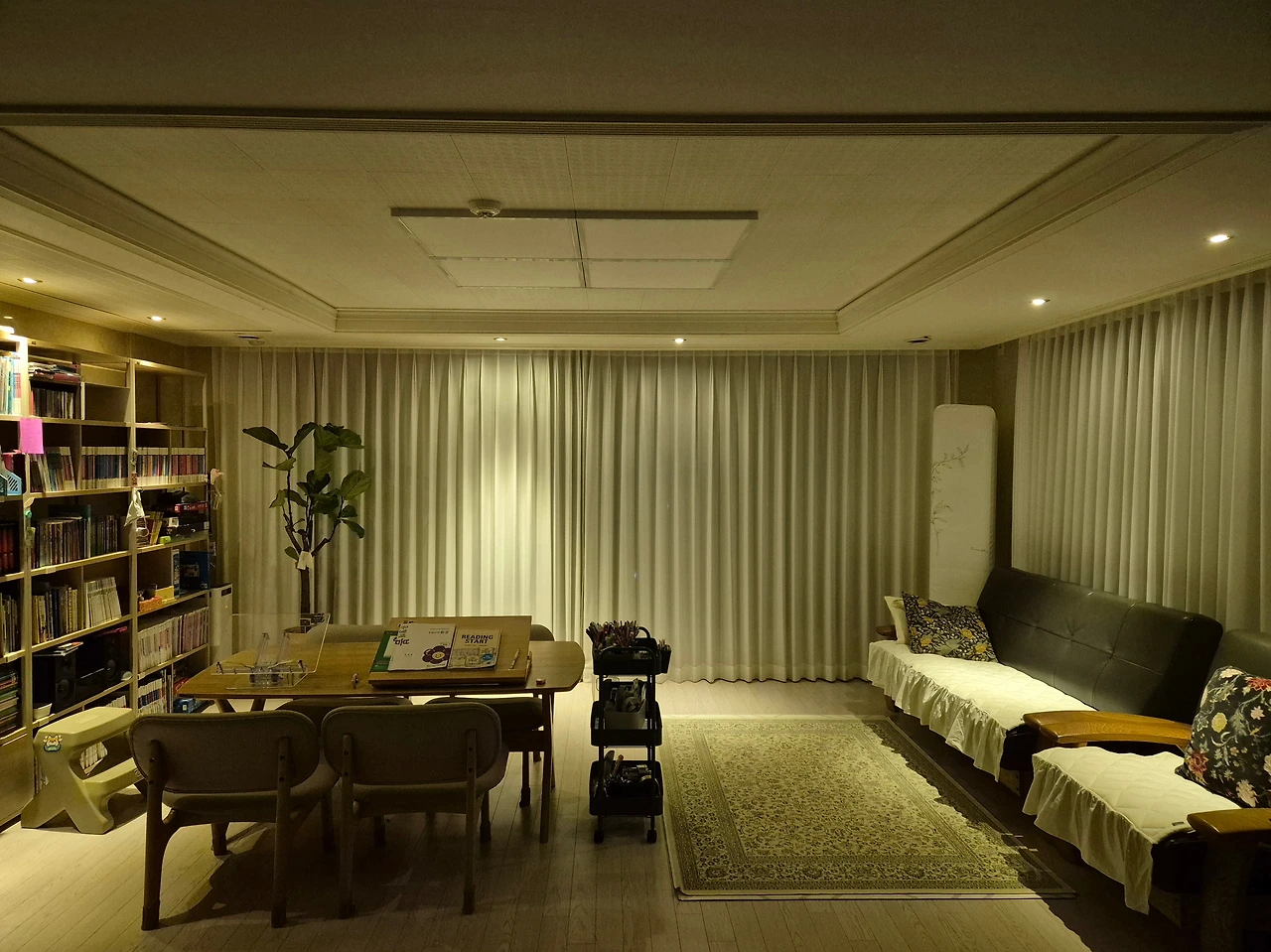 식탁에 앉아 정돈된 집을 바라보는 얼굴에 살짝 미소가 지어진다.