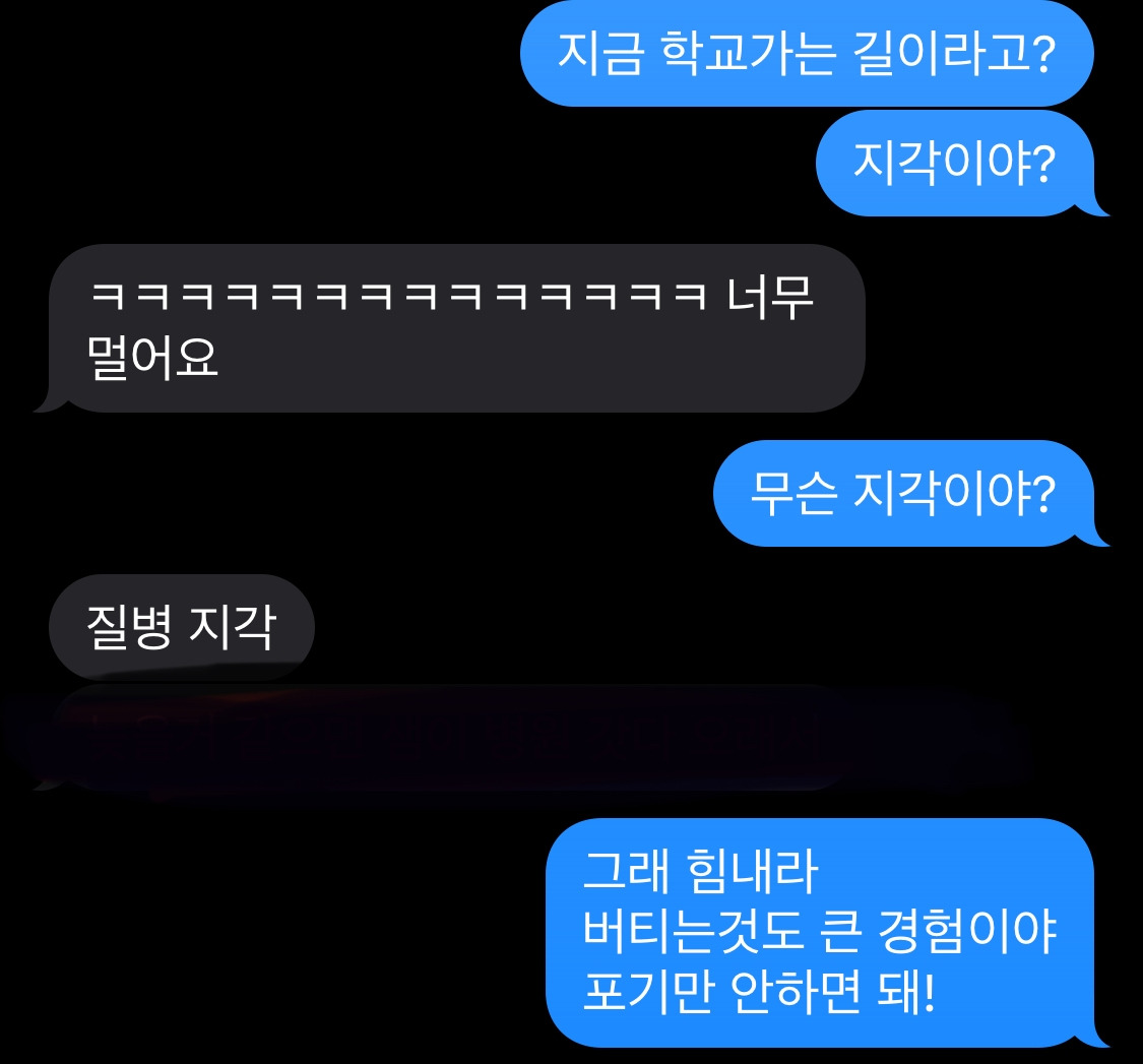 늦은 밤, 매너타임이 지나고 지난 시간에 나의 안부를 묻는 메시지를 보내왔다. 직감으로 S가 학교적응이 어려운가 싶어 잔소리 않고 농담을 주고받았다.