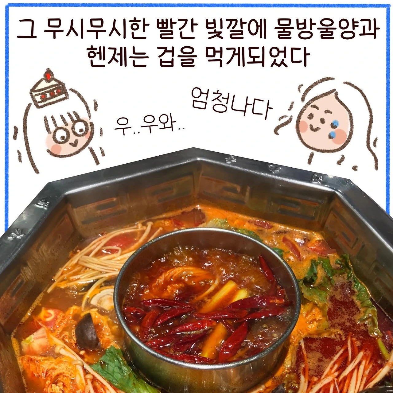 우산 아저씨와 관리원 아저씨의 훈훈한 결말에 우리는 안도의 한숨을 내쉴 수 있었다. 그리고 마주하게 된 쓰촨 훠거. 매운 걸로 유명한 이 지방 요리이지만 나도 이것을 실제로 맞이하게 된 것은 처음이라 약간 긴장을 하게 되었다.