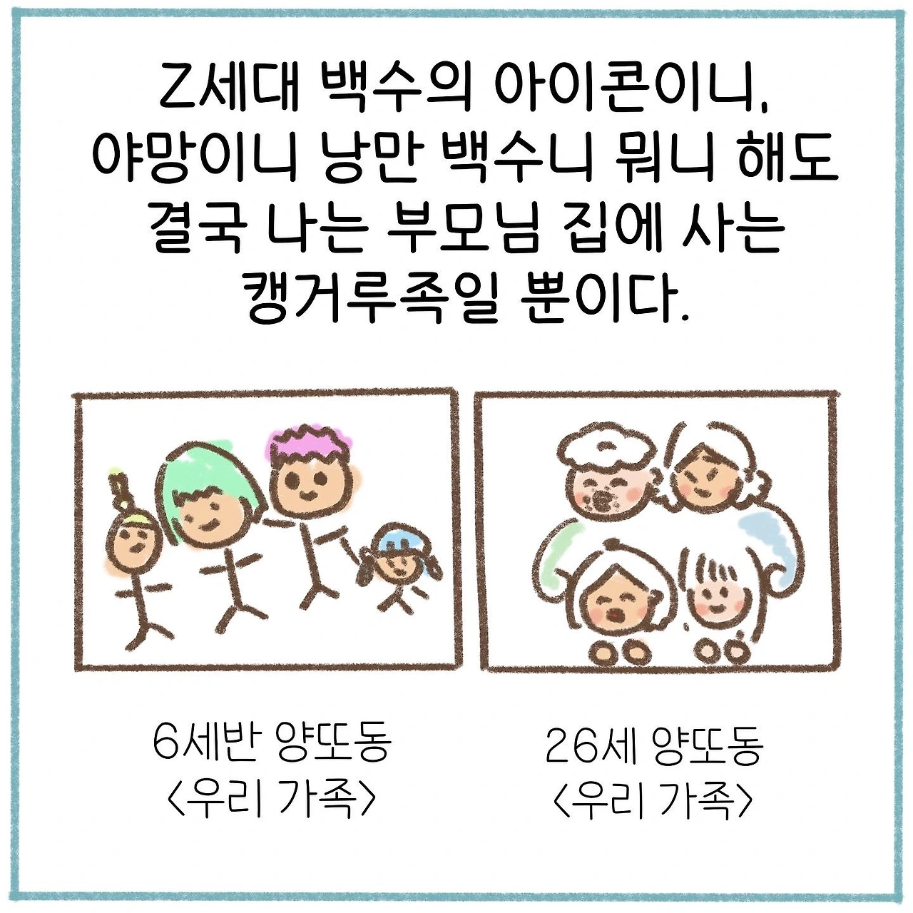 Z세대 백수의 아이콘! 하고 싶은 일들이 아직 너무 많아 취직을 잠시 보이콧 한 채 야망 백수, 희망 백수가 되기로 결심했습니다. 만화와 에세이로 생각을 그려내고 있습니다.