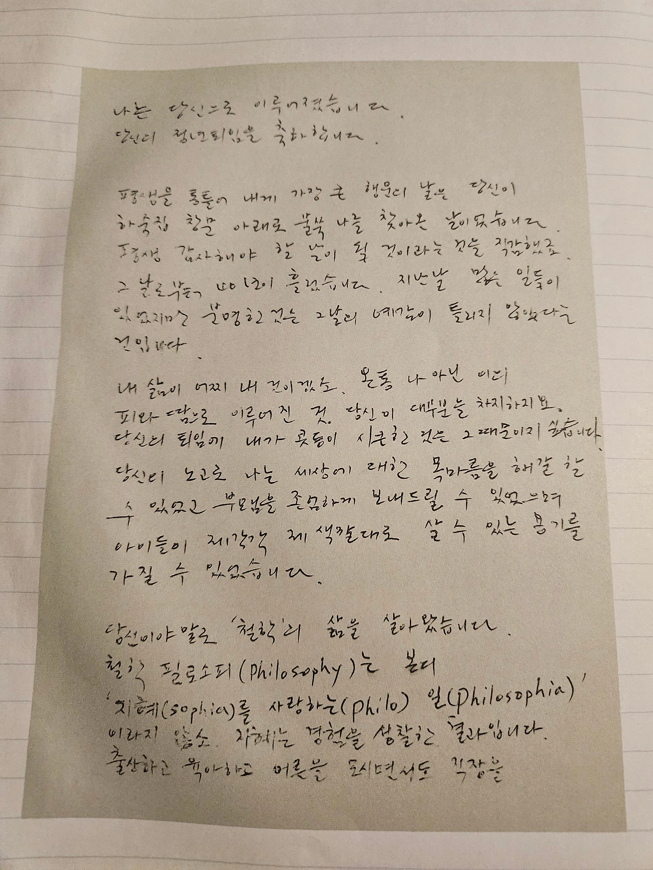 "아빠는 우리 어릴 때부터 글쓰기의 중요성을 엄청나게 많이 얘기하셨다. 여행을 자주 데리고 다니거나 보냈는데 항상 여행기를 쓰라는 조건이 붙었다. 대학생 때 유럽 여행을 갈 때 지원을 청했더니 여행기 원고를 써오라고 하셨다. 서포트 해주는 여행 경비는 그 원고료로 지불하는 거라고 말씀하신 게 기억난다. 아빠는 늘 기록의 중요성에 대해 강조하셨던 것 같다. 인생의 경험과 단상이 휘발되는 걸 경계하신 것 같다." <이나리 님 인터뷰 중>