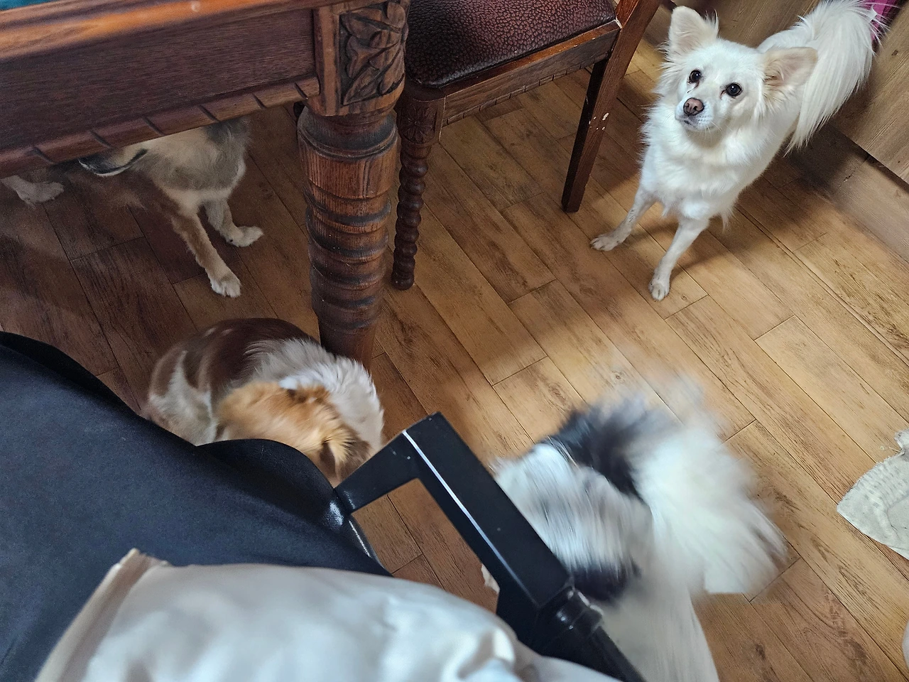 강아지 네 마리가 영월의 동강과 드넓은 뒷산을 마당삼아 자유로이 뛰다니는 아름다운 곳. 그곳에 사는 강아지 맹자에게 "산책갈까?" 하면 본인이 아는 지름길을 통해 동강으로 안내해주는 마법같은 곳. 도시에서처럼 목줄을 잡고 긴장하지 않아도 되어 시루도 우리도 자유롭게, 패턴 없이, 시골길을 뛰어다녔다.