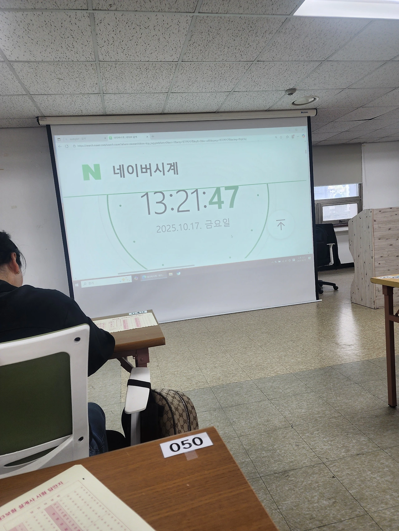 시험장소 옆 대기실에서 마지막 점검을 하고 있는