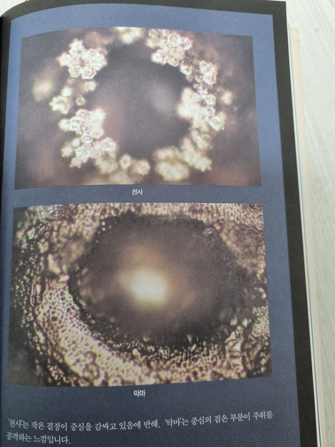 한때 베스트셀러 "물은 답을 알고 있다"의 작가 에모토 마사루는 물의 결정체를 촬영하는 연구를 통해 물이 생각을 느끼고 모양이 변하는 것을 사진으로 보여 주었다.