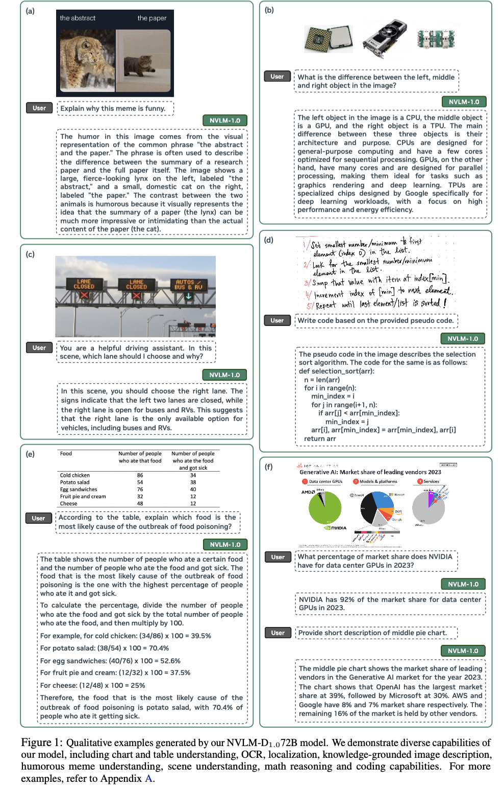 지금으로부터 7일 전인 10월 1일에 huggingface에 오픈소스로 NVLM 모델과 파라미터들까지 모두 오픈소스로 공개했다. 또한 개발 과정, 활용한 데이터셋, 연구 결과를 정리하여 arxiv에 논문을 게시했다.