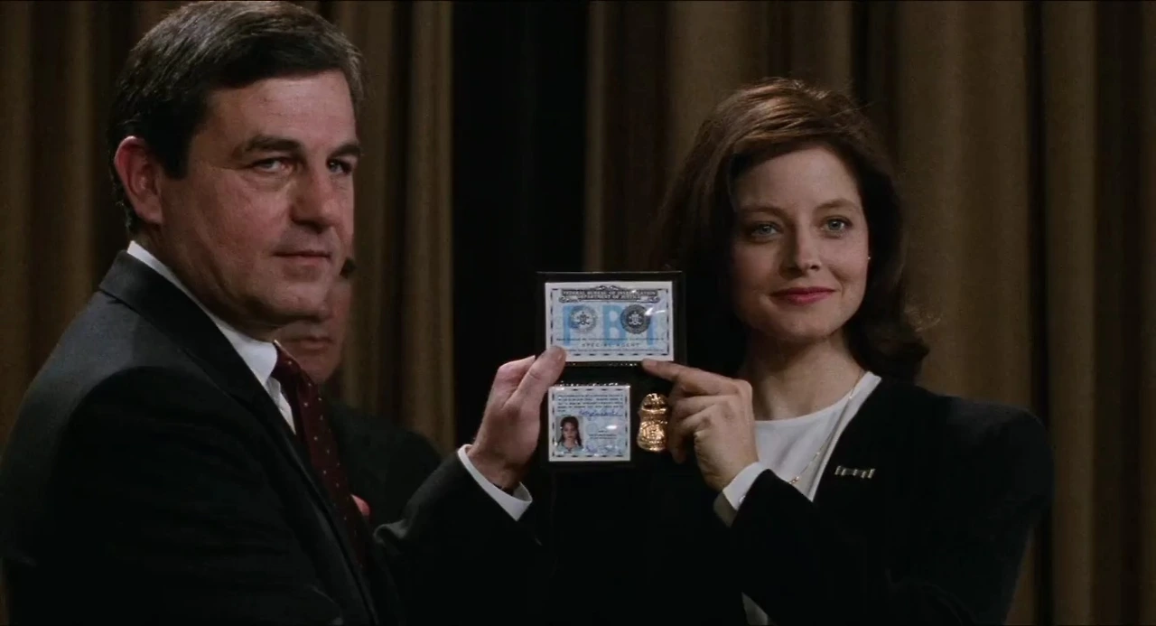 클라리스의 내면과 트라우마가 클라리스 내부의 문제라면, <양들의 침묵>은 클라리스가 직장에서 감내해야 하는 불편한 시선, 즉 클라리스 외부의 문제도 꼬집는다. 클라리스는 FBI에서 몇 안 되는 여자 FBI 생도다. 영화는 클라리스가 젊은 여성 FBI로서 겪게 되는 시선을 직간접적으로 보여 준다. 엘리베이터에서 키 크고 건장한 남성들 사이 체구가 작은 클라리스가 올라타자 클라리스를 훑어보는 남성들의 장면이나, 칠튼 박사의 희롱에 자신은 챠밍 스쿨 학생이 아니라고 응수하는 장면처럼 말이다.