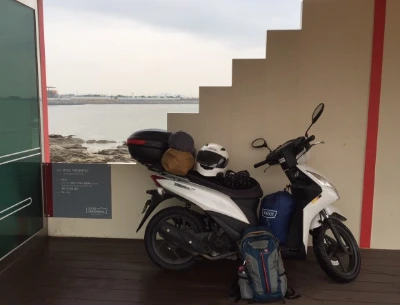 오이도 전망대에 도착해서 잠시 비를 피하고 주위를 감상하다 다시 궁평항으로 출발했다. 원래 목적지는 왜목마을이었지만, 해안도로로 가고 싶은 마음에 목적지로 정했다. 가는 도중에 두번째 시련이 내게 다가오고 있음을 전혀 감지 하지 못했다. 가는 도중에 오일 계산을 잘못하는 바람에 도중에 조나단이 멈춰버린 것이다. 가장 가까운 주유소는 1km정도 떨어져 있었다. 결국 무거운 조나단을 끌고 주유소까지 걸어갈 수밖에 없었다. 여행 초보라서 여분의 오일을 항상 지녀야 한다는 스쿠터 여행 경험자인 후배의 말을 간과했던 것이다. 그 이후로 항상 오일을 담은 페트병을 소지하고 다녔다. 덕분에 두번째로 멈췄을 때는 예비 연료로 주유소까지 잘 찾아갈 수 있었다.